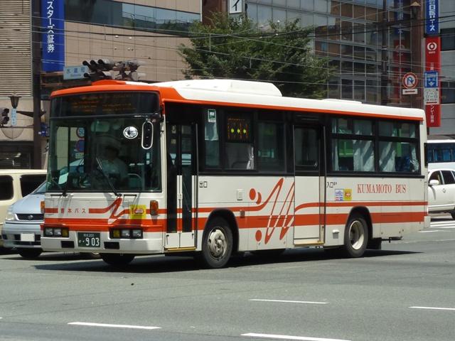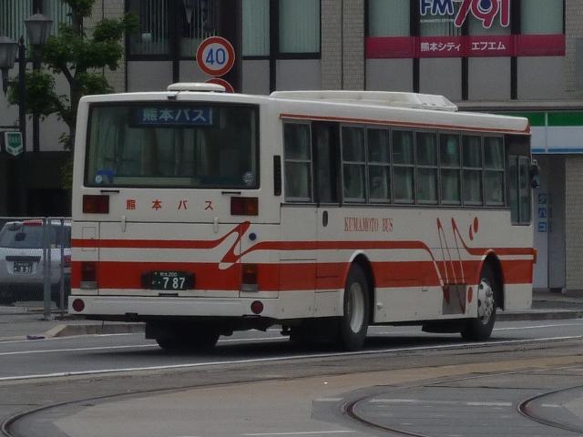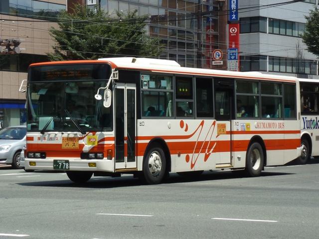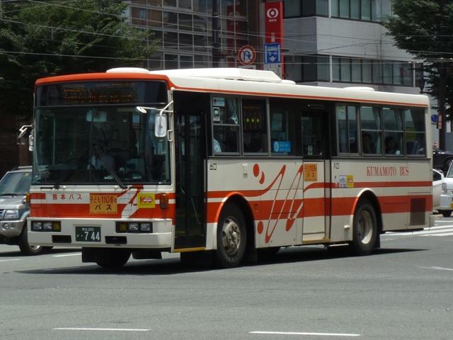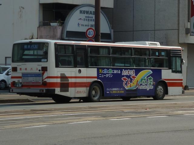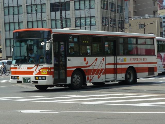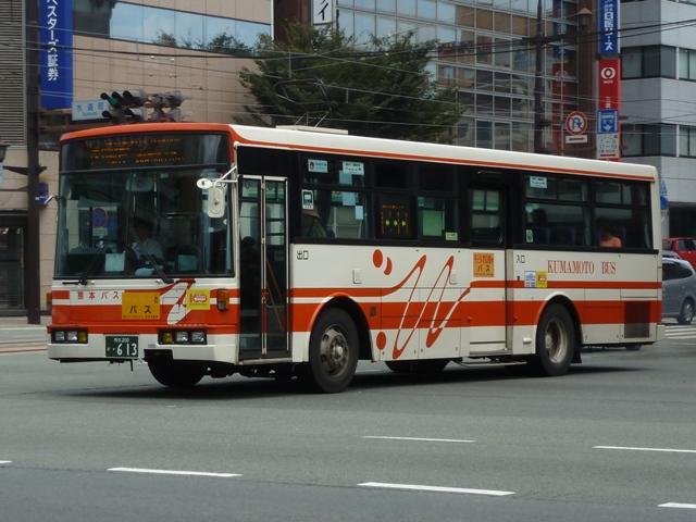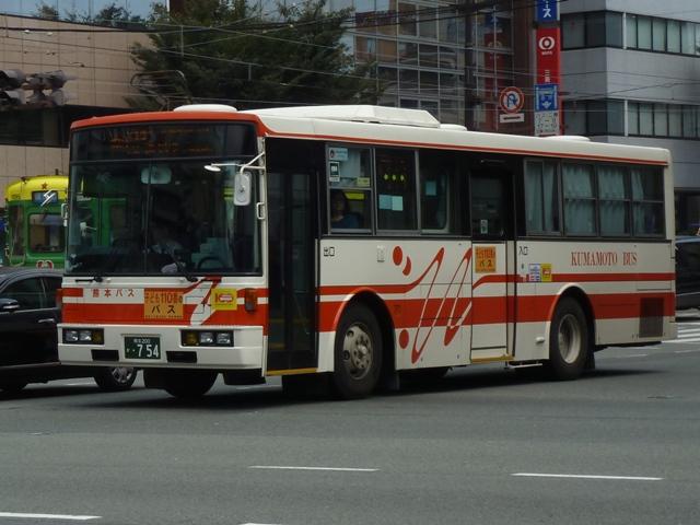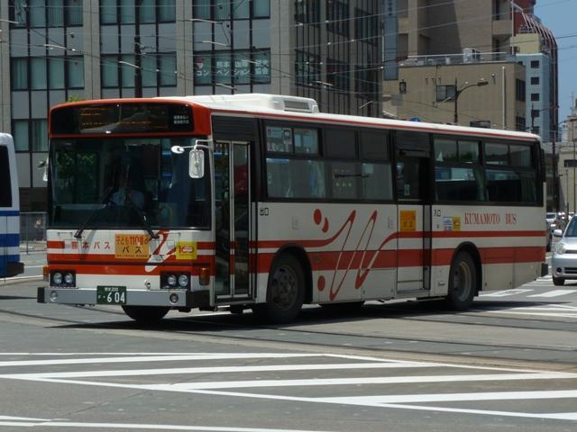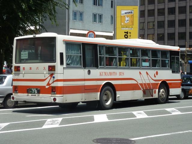 「熊本で見たバス2012」と題したバス画像のよせ集めシリーズ。 長々と続けてきた熊本バス編も今回で一区切り。その6では、記録出来た熊本200か 600番台以降の一般乗合車両・特定車を並べていきます。 なお、ノンステップ車の型式・年式は『バスラマインターナショナル』各号掲載の「ノンステ ップバス導入一覧表」を参照しています。 熊本200か604. まずは、おなじみの京浜急行バスグループからの日野HTワンステップ移籍車。前回の その5で並べた車両とほぼ同時期に登場した車両です。 熊本200か613. 同じく京浜急行バスグループから富士ボディのいすゞLVワンステップ車。この車両のフ ロントバンパー部は中型車のような2色塗りとなっていています。 熊本200か695. こちらはフロントバンパー1色塗りとなっているLVワンステップ車。気まぐれな感じですが、 塗装工場の違いなのかもしれません。 熊本200か744. 熊本200か750. ワンステップ移籍車で低床化を進めるのかと思いきや、ツーステップ移籍車導入に逆戻り。 相模鉄道(相鉄バス)からいすゞLVをまとまった台数導入。屋根上丸型ファン×3+車掌窓 と往年の相模鉄道仕様となっています。上下で車両が異なり失礼。 熊本200か754. 相模鉄道(相鉄バス)からのいすゞLV移籍車をもう1台。気付けば富士ボディ車が移籍 車導入で熊本バスに結構な台数在籍しています。 熊本200か778. さらには三菱ふそう純正のニューエアロスターも登場。江ノ島電鉄(江ノ電バスグループ) からの移籍車でツーステップ仕様。セーフティウィンドー部にあった運賃支払表示窓は埋 められてしまいましたが、左ウィンカーと連動してチンコンと鳴る江ノ電独自仕様のベルは 健在。耳で聴いて移籍元が分かる車両となっています。