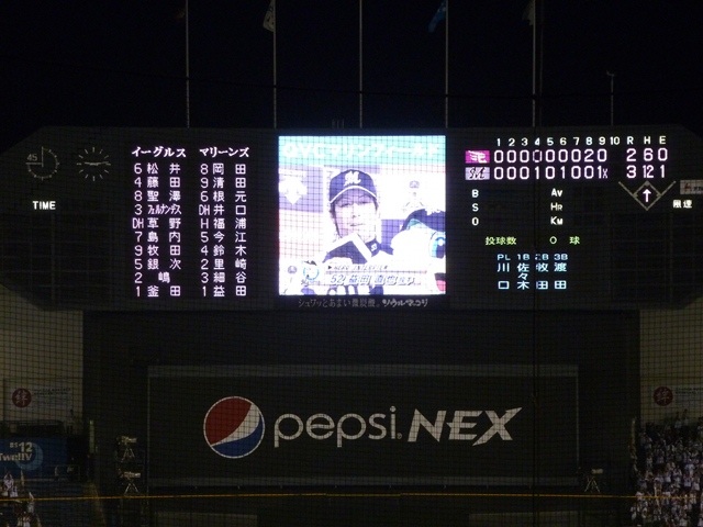ブログの更新をサボり気味なので、安易な内容でお茶を濁す拙ブログ。 つまり野球ネタです。 千葉ロッテ 3x - 2 東北楽天 8回に同点に追いついた東北楽天でしたが、2番手塩見が9回1アウト2・3塁のピンチを 招き降板。替わった釜田が連続四球でサヨナラ押し出し。ロッテと楽天の4位・5位決定 戦は明日も続くことになりました。 勝利投手は70試合目の登板となった益田。新人で70試合って・・・。 それにしても、来年の監督は伊東?西村も大概ですが、伊東も西武3年目は深刻な左右 病&選手からもソッポを向かれていた末期的状態だったという印象。とりあえず新人選手 の自主トレ初日は千葉競輪場でタイムトライアルということでキ・マ・リ。八木沢ロッテでは 果たせなかった、「常勝西武ライオンズの教え」を伝道してほしいものです。 PR