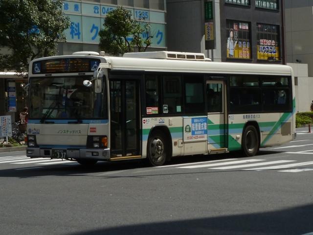 QVCマリンスタジアムへ何度か足を運んだ際、やはりバスネタも補給せねばということで 途中下車。小生定点観測シリーズ、「船橋新京成バス」のバス画像よせ集めになります。 今回は2012年10月編ということで、気になった車両をいくつか並べていきます。 社番:N-M44. 自動車NOx・PM法の規制により、富士7Eボディの大型ワンステップ車は全車引退。 新京成電鉄直営時代の塗装で残るのは、大型ノンステップ車1台と中型車という状況。 大型ノンステップ車はアレなAT車ですから、いつまで残るのか微妙なところ。 まずは富士ボディのRMワンステップ車。新京成電鉄直営末期は中型車を大型車代替 として導入し、ダウンサイジングを進めていました。 社番:N-M62. 西工ボディのRMノンステップ車。西工ボディの本格導入が進みますが、年々塗装の色 あせが酷くなっている印象・・・。 社番:1006. ここから分社後導入の車両を大型車から並べていきます。シビリアンテールのRAワン ステップ車。 社番:1016. 習志野新京成バスの内部事情から、導入早々に船橋新京成バス在籍のKC規制車と トレードするようなかたちでグループ間転籍したRAワンステップ車。KC規制車の代替 にあわせて習志野新京成バスに戻るのかと思いきや、今のところそんな動きも無く。 習志野新京成バスは船橋新京成バスからトレードされた車両・習志野生え抜き車両とも 新車導入による代替を進めています。 社番:1028. 途中MFBM製のAPに浮気したこともありましたが、西工解散直前までRAを導入。末期 の車両は後部に反射材で「BUS」の表示。 社番:1031. 時期的にUDのAPなのか三菱ふそうのMPなのか分からないワンステップ車。 社番:1033. 2012年9月末に登場したBJリーグ「千葉ジェッツ」ラッピング車。「千葉ジェッツ」のラッピ ングは新京成電鉄の鉄道車両にも登場し、チームを盛り上げています。 社番:1036. UDのバス事業撤退により新車導入がどうなるのか気になりましたが、APの流れから そのまま三菱ふそう車導入となった模様。船橋新京成バス誕生後初となる大型ノンステ ップ車が登場。扉側の側面窓下辺が中扉を境に異なるボディですが、それほど違和感 を覚えないのは塗装デザインのおかげでしょうか。 社番:1040. せっかくなのでMP大型ノンステップ車をもう1台。これらの導入で最後まで残った富士 ボディの大型ワンステップ車を代替した模様。 社番:1405. 中型車も1台だけですが並べておきます。日野エンジンを搭載したPB規制車のRMノン ステップ車。分社化当時は松戸を除くと、中型ノンステップ車の導入がしばらく続きました。 社番:F-130. 最後に「船橋バス」時代に導入されたエルガノンステップ車。現在販売中のMPがATのみ ということもあり、今のところ船橋新京成バス唯一の大型MTノンステップ車となります。 フロントガラス下にあった「F Bus」の表記が消され、なんとも物足りない感じとなっていま すが、引継ぎ後だいぶ経ったこともあり、これはこれで見慣れてきました。 PR