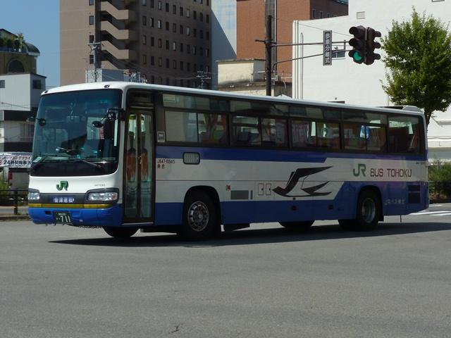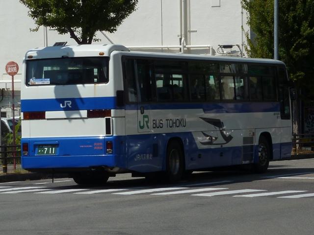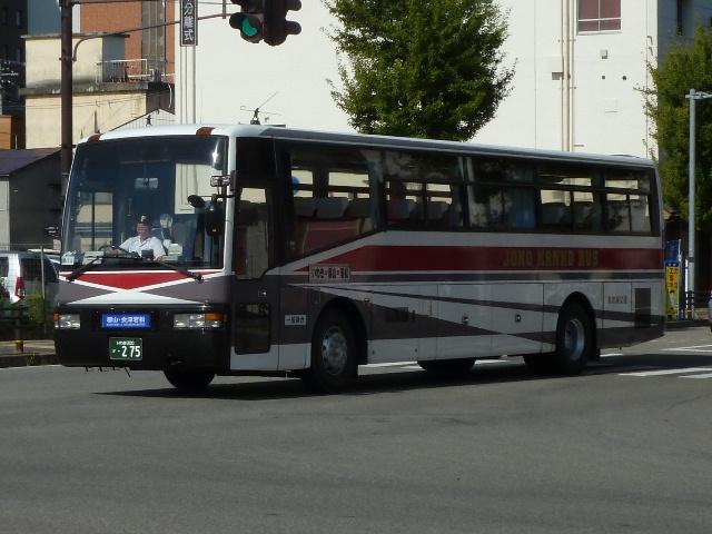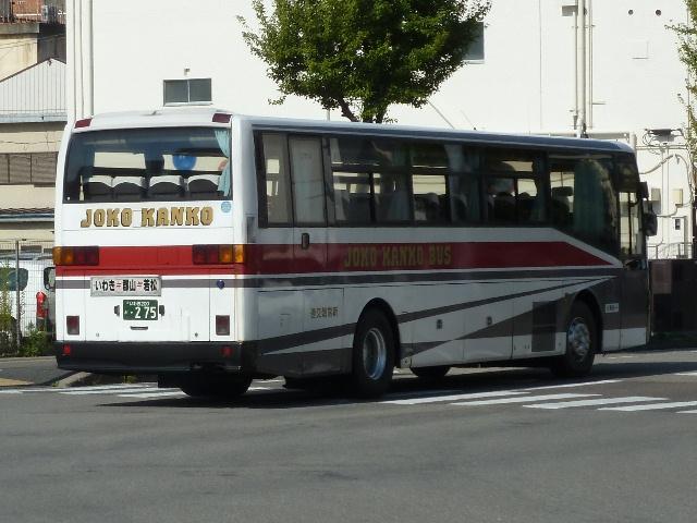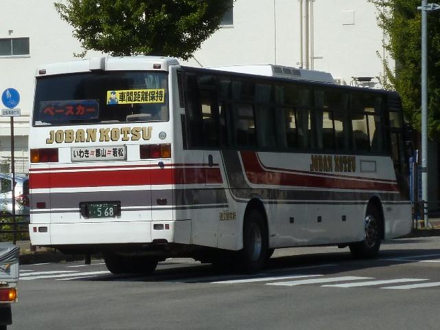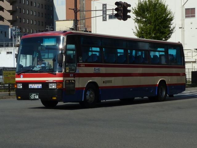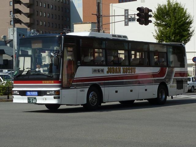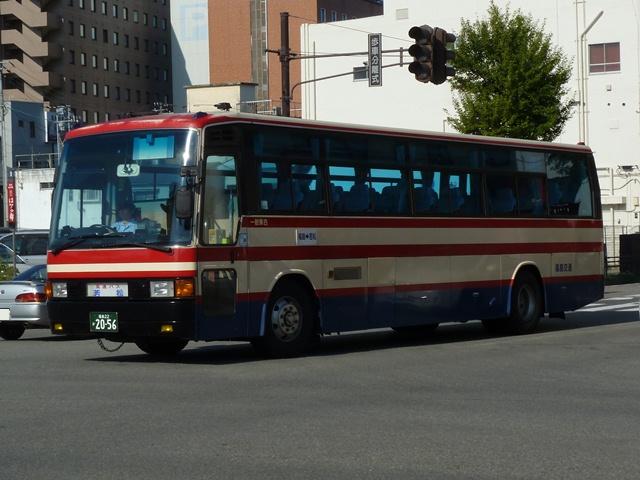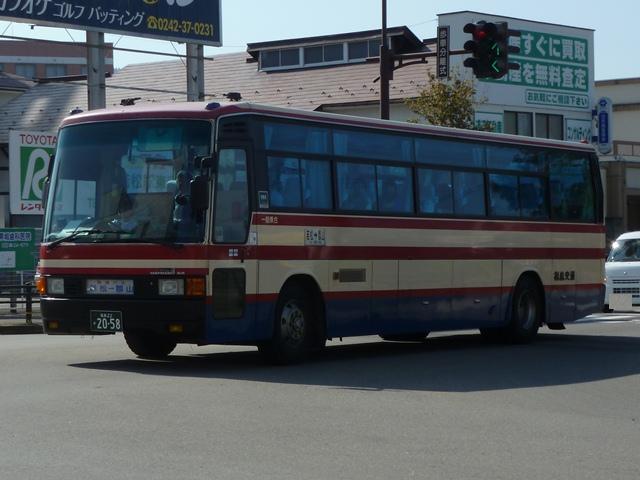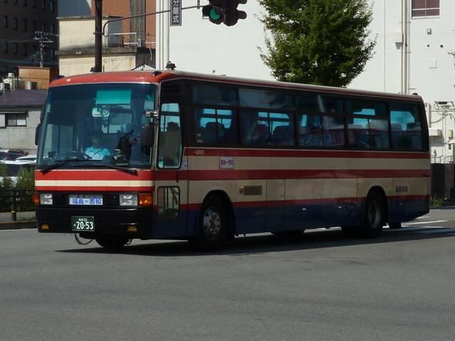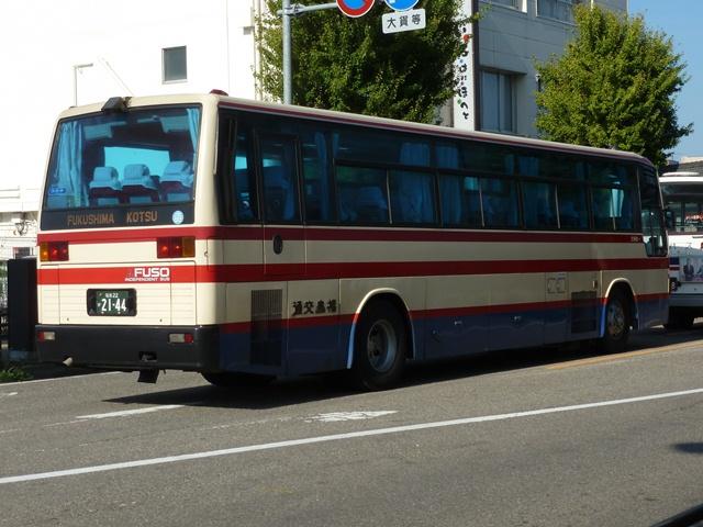 バスマガジンの感想めいたものを書いていたエントリが消えてしまい、ブログ更新への テンションだだ下がりです。それはさておき、福島バスまつりとあわせて会津若松へ出 かけることが、ここ数年の恒例行事となっている小生。 ということで拙ブログ恒例シリーズ、「会津若松で見たバス」を今年もスタート。今回の その1では、2010年編以来となる会津乗合自動車以外の事業者の乗合車、高速乗合 バス車両車を並べていきます。 <広田タクシー> 会津200か17.U-MR132D改※1。 広田タクシーが運行する、まちなか循環バス「エコろん号」で活躍するいすゞMR。路線 は一方向の循環バスで、中心市街地観光にも使えるコミュニティバスというような感じ。 会津若松駅前には入らず会津若松駅付近の「富士の湯」を起点としていることから、会 津乗合自動車が運行する「ハイカラさん」「あかべぇ」と比べるとやや乗りにくい印象。 <福島交通> 福島22か2053.U-MS726S(91年車)※2。 福島22か2056.U-MS726S(91年車)※2。 続いて福島交通の高速車。ここ数年積極的な新車・移籍車導入で車両代替を進めてい る福島交通ですが、会津若松方面路線は今も変わらず古参のエアロバスでの運行とな っています。画像の2台は福島に所属する車両で会津若松・福島線で運用中でした。 福島22か2058.U-MS726S(91年車)※2。 同じく91年車のエアロバスですが、こちらは郡山の所属で会津若松・郡山・いわき線の 運用に入っていました。会津若松~郡山間は2012年10月のダイヤ改正で減便となった ことから、このあたりの古参車はいよいよ御役御免となったかもしれません。 福島22か2144.U-MS726S(92年車)※2。 郡山所属のエアロバスをもう1台。前面・後面に貼られているステッカーから、この車両は DPFを取り付けている模様。八都県市に乗り入れ可能ですから、「あぶくま号」運用も可能 です。 <新常磐交通> いわき22か568.KC-LV781R(96年車)※3。 会津若松~郡山・いわき線は会津乗合自動車・福島交通・新常磐交通の3事業者による共 同運行。運用車両はバラエティに富み、いすゞ純正ボディのスーパークルーザーでは珍し い直結冷房仕様の車両。このタイプの車両も、会津若松路線の運用に入るようです。 いわき200か275. 富士7HDボディの日野車で旧塗装車。「JOKO KANKO BUS」のボディ表記から貸 切からの転用車の模様。いわき200かナンバーとなっていることから、宮城ナンバー から転属車でしょうか。 いわき200か276. 旧常磐交通時代は少数派だった三菱ふそう車。U規制車のニューエアロバスで、こちらも 「JOKO KANKO BUS」のボディ表記から貸切からの転用車のようです。 <ジェイアールバス東北> 社番:J647-02415. 会津若松と仙台を結ぶ路線はジェイアールバス東北と共同運行。一部の便はプロ野球 開催時に日本製紙クリネックススタジアム宮城へ延伸したほか、土日祝日は三井アウト レットパーク仙台港までの運行を開始するなど積極的な集客策を行っています。 ジェイアールバス東北の運用車両は、2010年同様セレガRのFS折戸仕様車。 <新潟交通> 新潟200か414.PKG-RU1ESAJ(07年車)※4。 会津若松・新潟線は新潟交通と共同運行。PKG規制車のガーラも運用に入っているとは 知りませんでした。富士ボディの貸切転車がメインとなっている会津乗合自動車運行便と 比べると、運用車両にだいぶ差がついてしまった感。 型式・年式は下記の文献を参照しました。 ※1)「広田タクシーのユニークなバス達」『バスラマインターナショナル110号』(2008), ぽると出版 ※2)「福島交通 所有車両全データ」『バスマガジン41号』(2010),講談社ビーシー/講 談社 ※3)「常磐交通自動車グループ 在籍車両一覧」『バスラマインターナショナル85号』 (2004),ぽると出版 ※4)「新潟交通グループ 在籍車両一覧」『バスラマインターナショナル133号』(2012), ぽると出版 PR