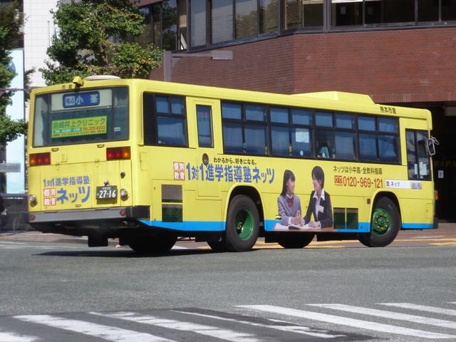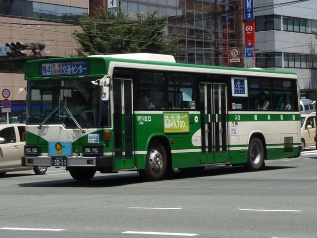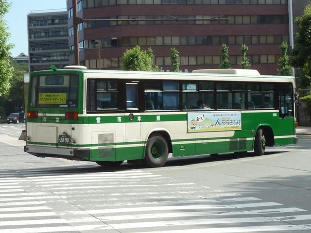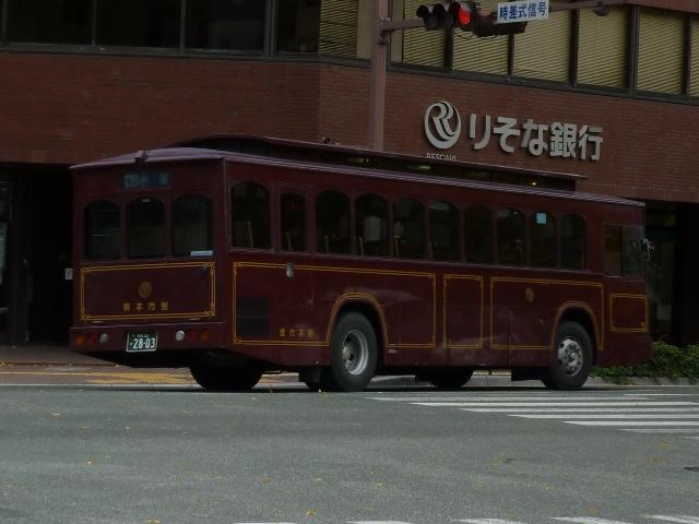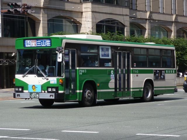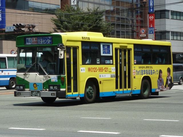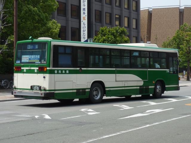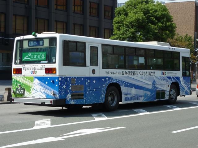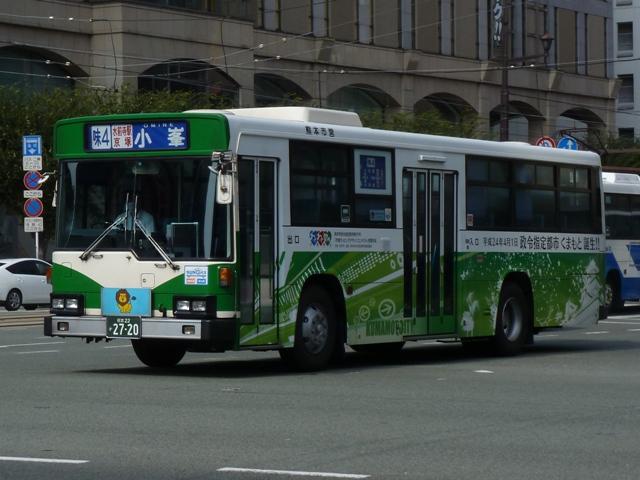 「熊本で見たバス2012」と題したバス画像のよせ集めシリーズ。 今回は熊本市営バス編その2として、記録出来た「熊本22か」ナンバーの車両を並べて いきます。熊本都市バスへ路線と車両セットで移管が進められているため、市営バスに 残っている車両の陣容がいまひとつ分かりません。 ※なお、型式・年式は 「熊本市交通局・熊本都市バス在籍車両一覧表」『バスマガジン65号』 (2014),講談社ビーシー/講談社 を参照し、2014年8月10日追記しました。 熊本22か2803.U-CG3KUSAU改(93年車)※。2011年12月に記録。 6月に更新した熊本市営バス編その1から今回のその2まで、更新間隔がだいぶ開い たのは画像のレトロバスを2012年に記録したかったため。小生が熊本に行った日は 残念ながら小峯の車庫内でも当日動きそうに無い駐車位置に鎮座してばかり。結局 2011年12月に記録したものを並べことになりました。 センターエンジンの特殊な車両ということや、路線縮小で運用車両に余裕が出来たこと から、あえて運用する必要は無いのかもしれません。 熊本22か2716.U-MP218K(92年車)。 ここから2012年に記録した車両を並べていきます。熊本市営バスのツーステップ車の 代名詞と言える西工B-Ⅱボディ。画像の車両はリヤから三菱ふそうMPと分かります。 熊本都市バスへの車両移管により、現在熊本市営バスに在籍する車両で古参格はこの あたりになるのでしょうか。この車両はラッピング車となっています。 熊本22か2719.U-HT2MMAA(92年車)。 リヤ側画像がなく分かりにくいですが、こちらは日野HT。先ほどのMPが短尺のK尺車で、 こちらは標準尺のM尺車。当時の熊本市営バスは路線環境や利用実態などから大型車を M尺・K尺、中型車を9m・8.5mサイズを導入していました。 熊本22か2720.U-HT2MMAA(92年車)。 同じく日野HTで、2012年4月1日に熊本市が政令指定都市となることを記念したラッピン グ車となっています。熊本城をメインに描き、なかなかクールなデザインです。同デザインの ラッピングは市電車両でも運行し、政令指定都市熊本をアピールしています。 熊本22か2798.U-LV324M(93年車)。 西工ボディのいすゞLV。このあたりの導入車両から側面行先表示位置が中扉後に変更。 もっとも側面行先表示位置が中扉前に移ったのはP規制車末期頃ですから、元に戻ったと もいえます。 熊本22か2892.U-MP218M(94年車)。 熊本22か2890.U-MP218M(94年車)。 前後で車両が異なり失礼。西工ボディの三菱ふそうMPでM尺車。同時期導入のK尺車 は純正ボディで登場しましたが、これらは全車都市バスに転籍した模様。 熊本22か3011.U-LV324M(95年車)。 西工ボディのいすゞLV。熊本市営バスは中型車もそれなりの台数在籍していますが、 熊本22かナンバーの中型車は全て都市バスに転籍したようです。このほか、特徴的な 日野ワンステップ車やノンステップ車も都市バスに転籍していることから、今回の画像 よせ集めはほぼ西工58MCオンリーとなりました。 PR