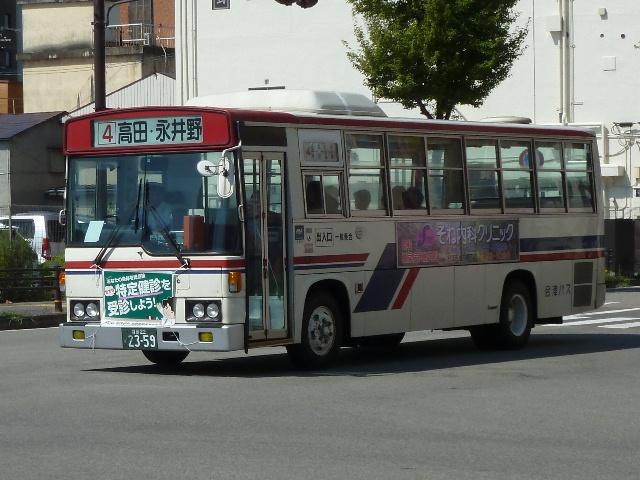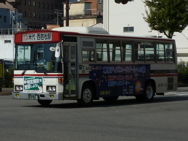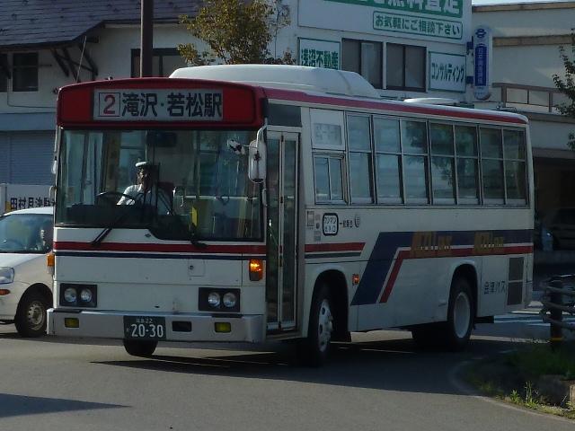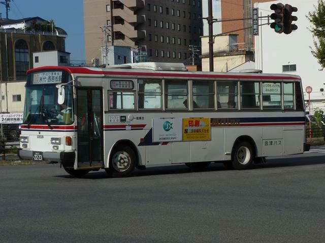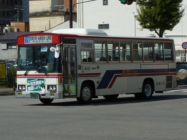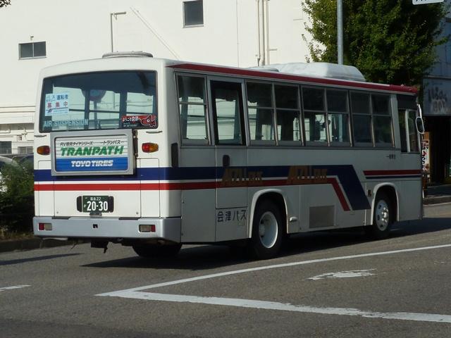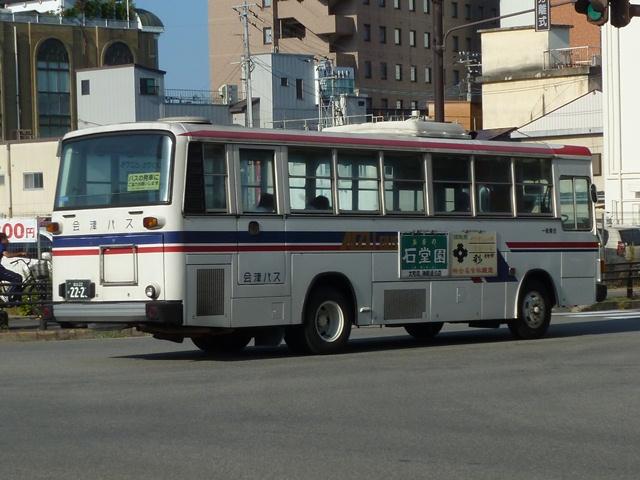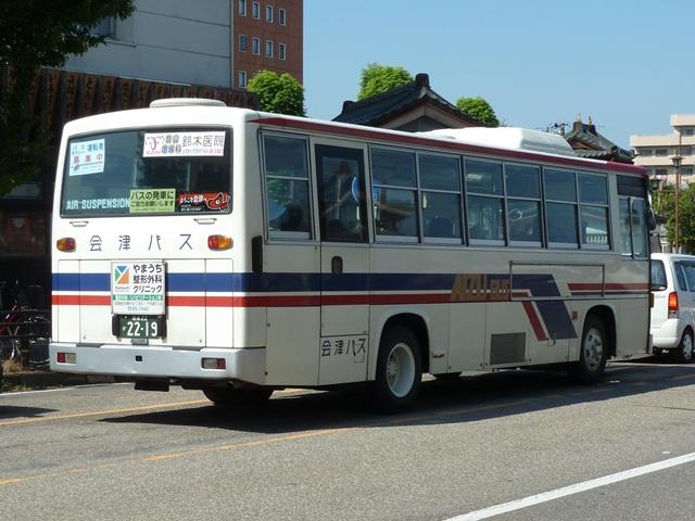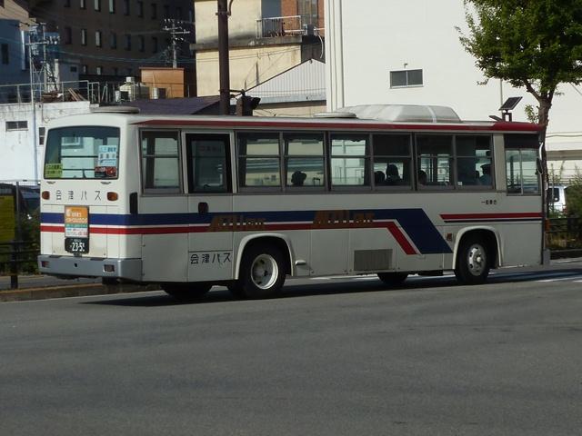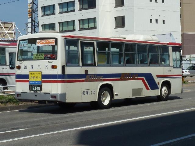 9月に会津若松で記録したバス画像のよせ集め「会津若松で見たバス2012」。 今回の「その6」では、記録出来た会津乗合自動車の登録番号「福島22か2300」番代 までの一般乗合車を並べていきます。ちなみに2011年編では1回にまとめていたもの を2回に分割しています。内容はほぼ同じですから、ブログ更新回数を稼ぎたいという欲 望に負けたことをあらかじめご報告しておきます。 福島22き2030. 今回記録出来た最古参登録車は、昨年と同じくこの日野RRの短尺車でした。やはり金 掘線の運用に入っていたことから、朝夕ラッシュ時のみの予備車的存在なのかもしれま せん。今年も微妙な構図の画像で失礼。 福島22か2218. U規制車の初期は短尺を導入していましたが、このあたりから標準的な9mサイズに変更。 同じく日野RR。側面窓下WB部のみラッピング広告車は会津乗合自動車でよく見かける存 在。かつてボディに直接広告をペイントしていた頃からの伝統的な掲示位置なんでしょう。 福島22か2219. リヤ側を記録出来た日野RRをもう1枚並べておきます。 後部窓の「AIR SUSPENSION」がRRであることの目印。 福島22か2223. 年々台数を減らしている印象の富士6Eボディ架装のいすゞLR。今年記録出来た車両は とうとうこの1台だけでしたが、さすがにかなりタイミングが悪かっただけだと思います。 福島22か2301. 会津乗合自動車では多数在籍している富士8Eボディ。この頃いすゞLRが6Eボディ架装 だった為、UDのRMと判別出来ます。 福島22か2359. 運転席側のWB間にラッピング広告をしていた関係なのか、「AIZU BUS」ロゴが中央と 後部の2ヶ所に貼られています。 福島22か2360. こちらは扉側も「AIZU BUS」ロゴが中央と後部の2ヶ所に貼られています。 それにしても、車両によって色褪せや汚れ・サビがかなり目に付くようになりました。 PR