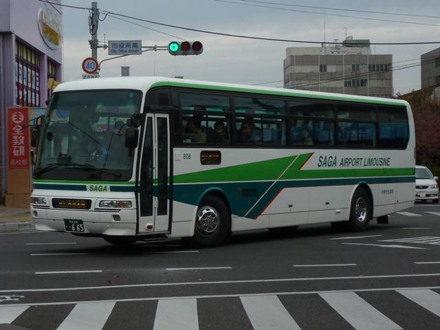 小生のライフワークの一つとしてここ数年取り組んでいるのが、公営企業形態による 「市営バス」に乗車すること。とは言うものの、去年から今年にかけて何度無く九州に出 かけていながら佐賀は通過するだけ。先日ようやく佐賀市交通局が運行する「市営バス」 に乗車することが出来ました。天気はあいにく雨が降りそうでパッとしませんでしたが、 バラエティに富んだ佐賀市交通局のバス車両を垣間見ることが出来ました。 ということで、今回は「佐賀で見たバス2012」と題したバス画像のよせ集め。佐賀市交 通局編その1では、佐賀空港接続バスに新たに登場した移籍車と一般路線で運用中の 小型車を並べていきます。 <佐賀空港接続バス> 車号:808. 現在、佐賀空港を発着するバスは、佐賀市交通局が運行する接続バスのみと寂しい状況。 接続バスには長らく貸切・路線兼用車だった路線シャーシのトップドア車の運用となってい ました。2012年1月に春秋航空の上海線就航開始にあわせて、移籍車ながら観光型の 専用車を2台導入。佐賀空港・佐賀県・佐賀市の上海線にかける意気込みを感じさせます。 まずは折戸仕様の三菱ふそうMS。側面後部にも取り付けられたスピーカーなどから、元は 京浜急行バスグループからの移籍車と推測。扉下部に取り付けられた格納式の補助ステッ プは佐賀市交通局導入時の改造でしょうか。 ちなみに緑帯の塗装は、かつて在籍していた貸切車デザインを採用しています。 車号:810.