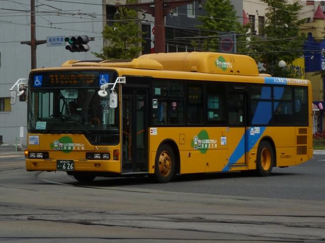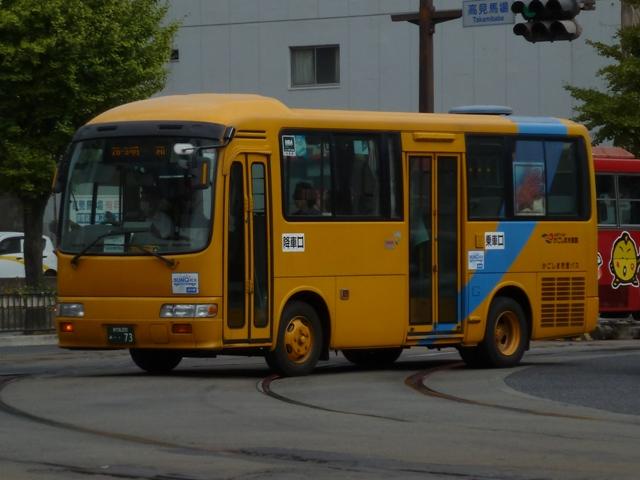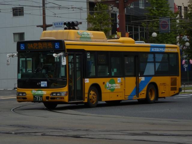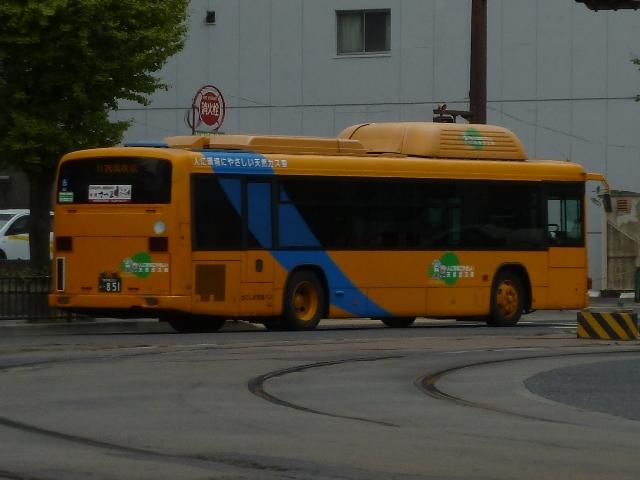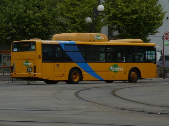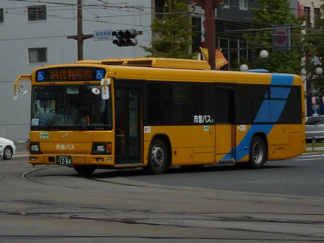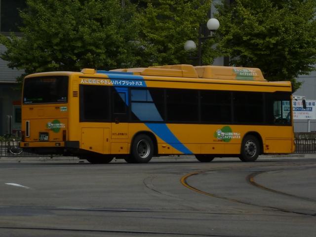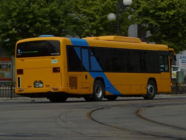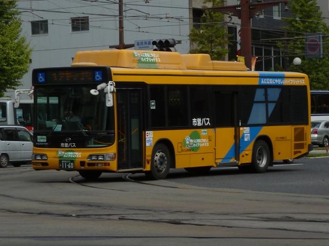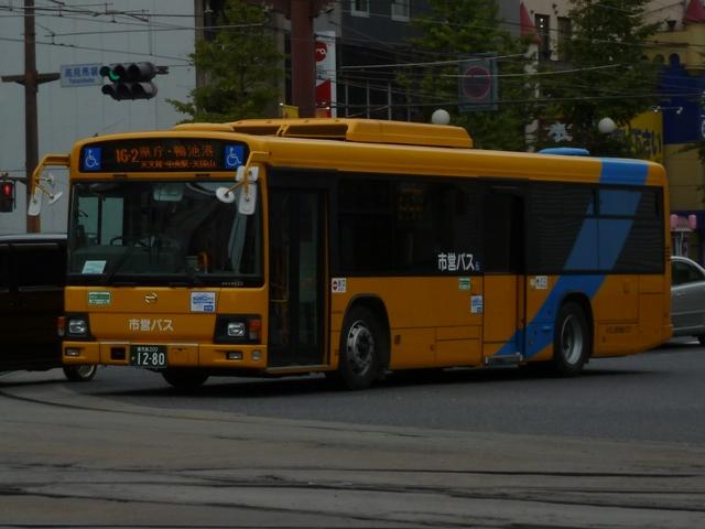 10月に鹿児島で記録したバス画像のよせ集め「鹿児島で見たバス2012」。 中途半端なシリーズになりそうなので、2011年に記録できなかった車両の画像を中 心に並べる程度にして早々に切り上げる予定。今回の鹿児島市営バス編その2では、 現行塗装変更後に導入した一般乗合車を並べていきます。 型式・年式は「鹿児島市交通局 在籍車両一覧」『バスラマインターナショナル65号』 (2001),ぽると出版 と『バスラマインターナショナル』各号を参照しました。 鹿児島200か131.KK-RM252GAN改(01年車)。 現行塗装は型式を参照したバスラマによれば「明るい太陽の光と南国の風をイメージした 黄色に青 」とのこと。2001年導入車から採用されました。まずは西工ボディのRM中型ノ ンステップ車。 鹿児島200あ73.KK-RX4JFEA(01年車)。 2001年は新規需要開拓目的で小判ナンバーのリエッセも3台導入。前中扉折戸仕様で すが、リフト装置等はありません。 鹿児島200か544.ACG-HU8JMFP(06年車)。 06年は県内初の日野のBRCハイブリッドを5台導入。屋根上バッテリー部・後方の側 面窓上に「人に環境にやさしいハイブリッドバス」のキャッチフレーズでアピールしてい ます。 鹿児島200か626.PJ-MP37JM改(07年車)。 ハイブリッド車に続き、CNGのMPノンステップ車を導入。環境を意識した車両導入は 公営バスならではでしょうか。「人に環境にやさしい天然ガス車」のキャッチフレーズで アピール。なお、鹿児島市交通局は通常のディーゼル車も導入していますが、2011 年編で並べた車両は極力省略するということでご勘弁を。 鹿児島200か721.BJG-HU8JMFP(08年車)。 BJG規制車のBRCハイブリッドは08年より導入開始。 鹿児島200か851.PDG-LV234N2改(09年車)。 09年はCNG車を導入。久々のいすゞ車でエルガのCNGノンステップ車。 3桁の排ガス記号から分かるようにAT車で、エアコンはデンソーを装備しています。 鹿児島200か1160.LJG-HU8JMGP(11年車)。 コンスタントに導入が続くハイブリッド車。省エネを考慮した新タイプの冷房装置を搭載し たLJG規制車は11年に導入しています。 鹿児島200か1280.LKG-KV234N3(12年車)。 12年車は初導入となる日野KVノンステップ車。10台導入し、多数在籍していたP規制 車の代替がそろそろ完了しそうなところまできました。 鹿児島200か1284.LKG-KV234N3(12年車)。 せっかくなのでもう1台。この塗装車も随分と見かけるようになりました。 PR