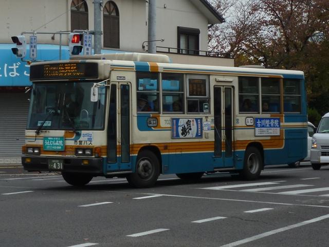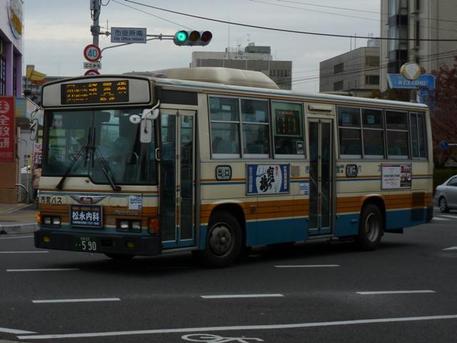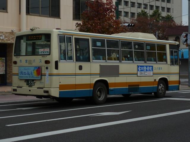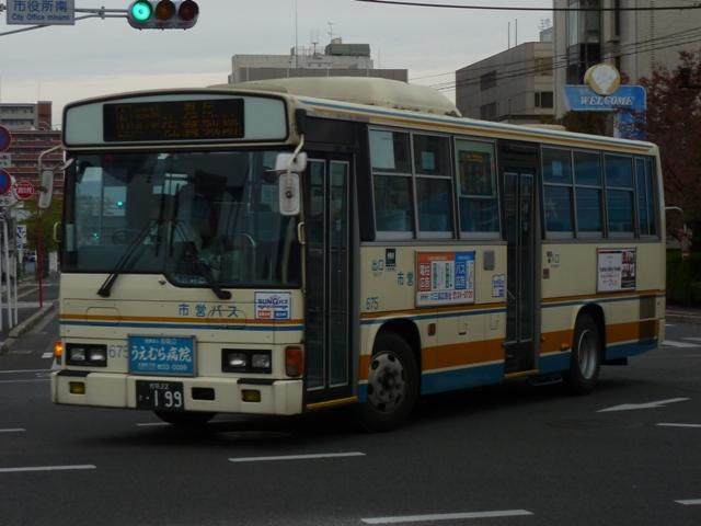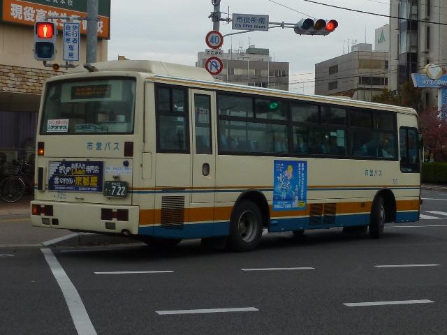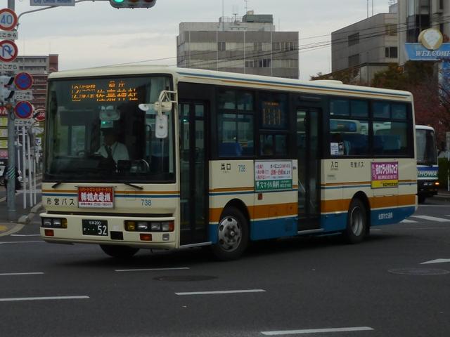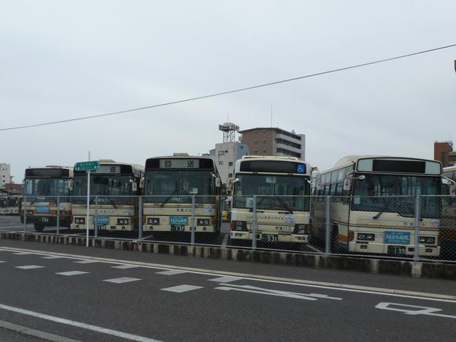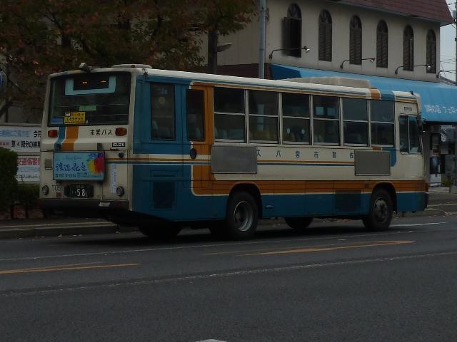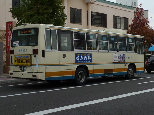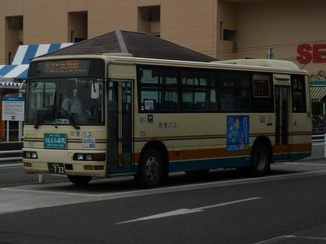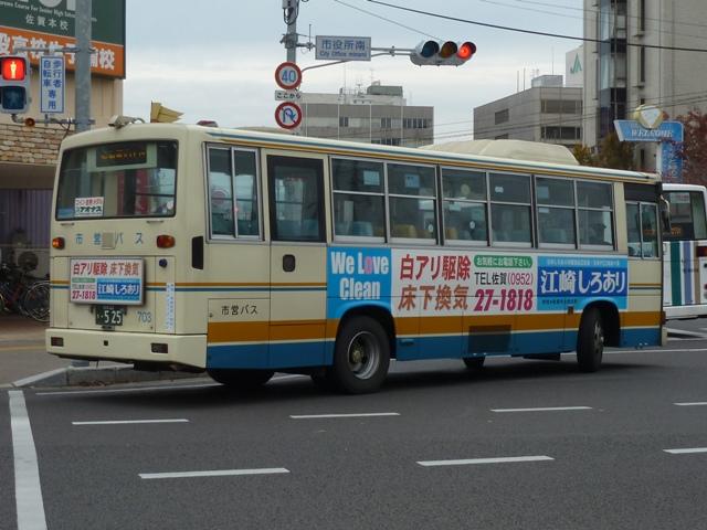 「佐賀で見たバス2012」と題したバス画像のよせ集め。 今回の佐賀市交通局編その2では、記録出来た中型ツーステップ・ワンステップ車を 並べていきます。 車号:675. 佐賀市交通局は4メーカーの車両を所有しています。車号は4と9を欠番としているらしく 末尾4・9及び40・90番台が欠番となっています。このため車号がナンバープレートの進 み具合以上に飛んでいることになります。在籍車両は平成初頭頃からのダウンサイジン グにより、現在の主力は中型車となっています。 まずは日野の前中扉折戸仕様で純正ボディの中型車。側面最後部の窓だけが横引違と いう変わった仕様です。画像の車両は登録番号から結構な古参車と分かりますが、行先 表示はLEDに改造されています。 車号:702. 車号:705. いすゞ純正ボディの中型車。画像の車両は旧塗装車で、けっこう手の込んだ帯塗装デザ インが特徴。佐賀市交通局運営のブログによると94年まで採用されたデザインとの事。 それにしても経費節減の為なのか、手入れが悪いのか分かりませんが、どの車両もボデ ィが薄汚れている印象。 車号:703. 日野中型車。この車両は現行塗装に塗り替えられており、先ほどのいすゞ車と比べて シンプルな帯塗装デザインとなっています。 車号:710. フロントガラス下にウィングマークのエンブレムを装備している日野中型車。 現行塗装に似ていますが、裾部のオレンジ帯にエンジの細い帯が入るなど妙に手が込 んでいます。先ほど紹介した佐賀市交通局ブログによれば95~99年の短い期間に 採用された塗装デザインとのこと。 車号:711. 車号710と同時期導入の車両ですが、こちらは現行塗装に塗り替えられています。ボ ディ再生も同時に行われたようで、ウイングマークのエンブレムは撤去されています。 車号:712. 過渡的な塗装デザインのいすゞ中型車。 車号:715. 西工ボディでいわゆるスペースランナー顔の中型車。ゆめタウンのラッピング車となっ ており、佐賀バスセンターとゆめタウン佐賀を結ぶ路線専用車となっている模様。行先 表示は方向幕仕様となっています。 車号:717. 同じく西工ボディでスペースランナー顔の中型車。このあたりの導入車から側面窓を上部 引違の逆T字と呼ばれる仕様に変更しています。 車号:718. 先ほどの車両と同時期導入の車両ですが、こちらは真っ白な塗装となっています。 ラッピング広告準備車といったところでしょうか。 車号:725. 三菱ふそうの中型車。前中扉仕様を標準採用している佐賀市営バスですが、この車両 は前後扉仕様という異端的存在です。どういった経緯があって導入したのか気になると ころです。 車号:738. 「佐賀200か」ナンバーとなった西工ボディのUD中型車。ワンステップ車となっています。 佐賀市交通局では一時期、東京都交通局からまとまった台数の移籍車を導入していま した。現在では古参格の車両ということもあり、新車代替で引退している模様。 記録できたのは元都市新バス仕様の日野車ですが、この日は動きそうも無く、営業所外 からの画像でご勘弁を。佐賀市交通局の大型一般乗合車は見たところ都営バス移籍車 と長らく佐賀空港連絡バス運用に入っていたトップドア車のみとなっているようです。 PR