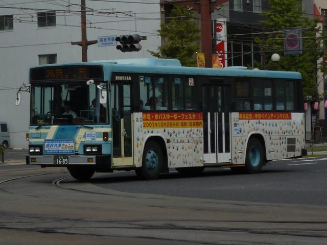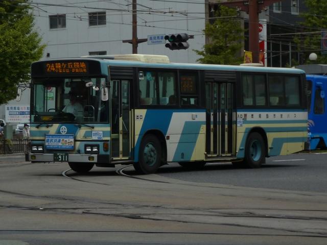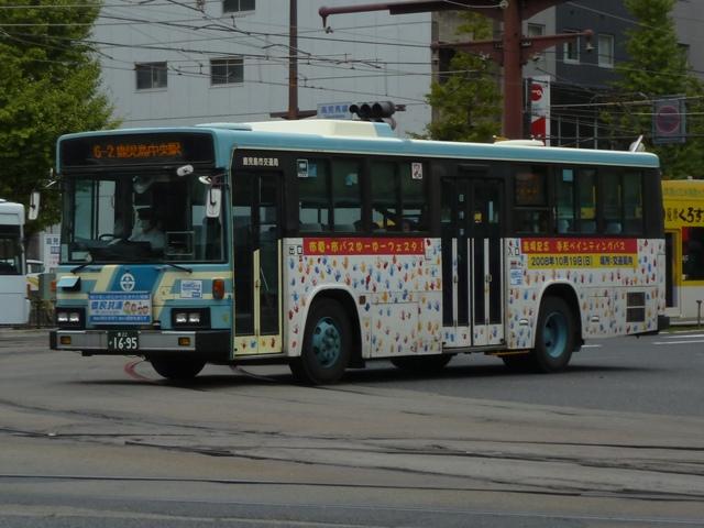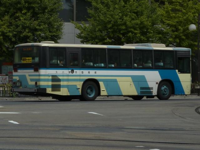 鹿児島22き828.KC-UA521NAN(96年車)。 96年導入車からKC規制車。前年に高出力エンジン搭載の日野車を導入したことから、 UD車はV8エンジン搭載モデルとなりました。西工ボディを架装することが多い鹿児島 市交通局で久々となる富士重工ボディです。もちろんフロントガラスは1枚の特注仕様。 鹿児島22き911.KC-HU3KMCA(97年車)。 97年は日野車。95年に導入したU規制車と同様、高出力エンジンを搭載しています。 鹿児島22き988.KC-MP717M(98年車)。 98年はエアロスターK以来となる三菱ふそう車。ターボ付きで出力をアップさせたMPを 導入しました。フロント1枚ガラスの特注仕様での導入はこの年までとなります。 PR