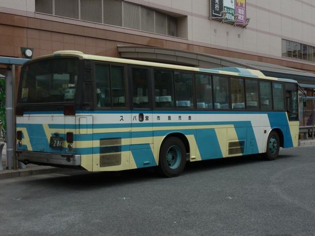10月に鹿児島で記録したバス画像のよせ集め「鹿児島で見たバス2012」。 鹿児島市営バス編その3では、旧塗装のツーステップ一般乗合車を並べていきます。 2011年に記録できなかった車両の画像を中心に並べる程度で、早々に切り上げる予 定としていますが、今回はほぼ2011年編(P・U規制車編、KC規制車編)と同じ車両 ばかりとなっていることをあらかじめおことわりしておきます。 型式・年式は「鹿児島市交通局 在籍車両一覧」『バスラマインターナショナル65号』 (2001),ぽると出版 を参照しました。 鹿22か1689.P-LV214M(87年車)。 まずは記録出来た鹿児島市交通局の最古参ナンバー車両だった西工ボディのいすゞ LV87年車。鹿児島市交通局のバスといえばフロントガラス1枚にオーバーラップ式ワイ パーの特注仕様が特徴。キュービックならデフォルトな仕様ですが、西工ボディや他メ ーカーの車両にもわざわざ特注で導入するところがポイントです。 鹿22か1695.P-LV214M(87年車)。