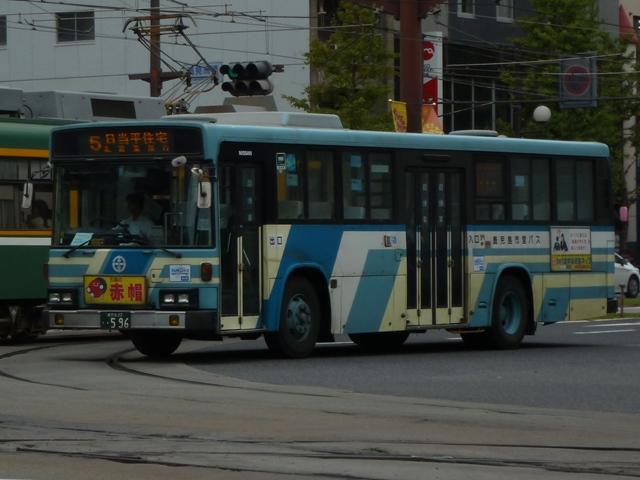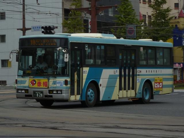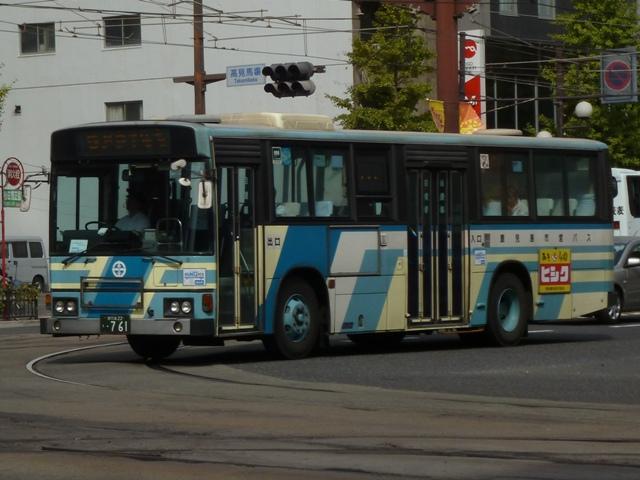 残る日野車は見られませんでした。 鹿児島22き282.P-MP618M(90年車)。 鹿児島22き286.P-MP618M改(90年車)。 水色主体の塗装は90年に導入したエアロスターKから採用。もちろんフロントガラスは 1枚仕様です。 鹿児島22き596.U-LV224M(92年車)。 一般乗合車のU規制車は92年導入車から。87年以来となる西工ボディのいすゞLVを 導入。 鹿児島22き756.U-HU3KMAA改(95年車)。 95年から高出力エンジン車の導入を開始。ラッピング広告対策で広告枠を撤去した車両 も在籍。この車両はさらに正面の交通局章も無いのですっきりし過ぎです。 鹿児島22き761.U-HU3KMAA改(95年車)。