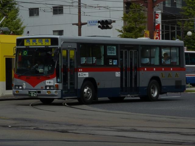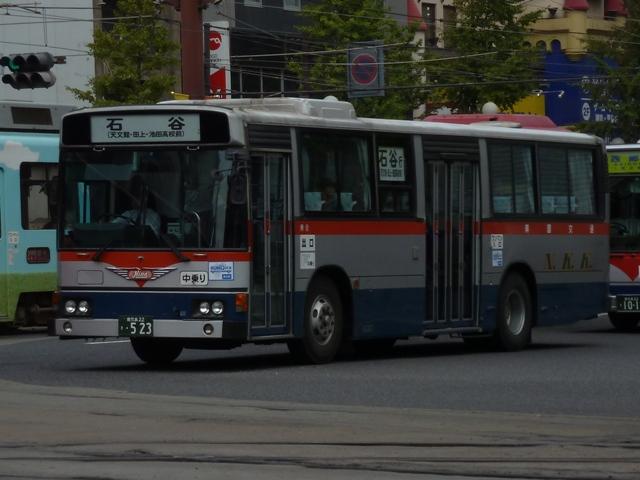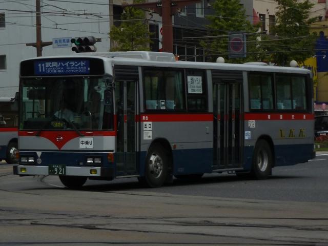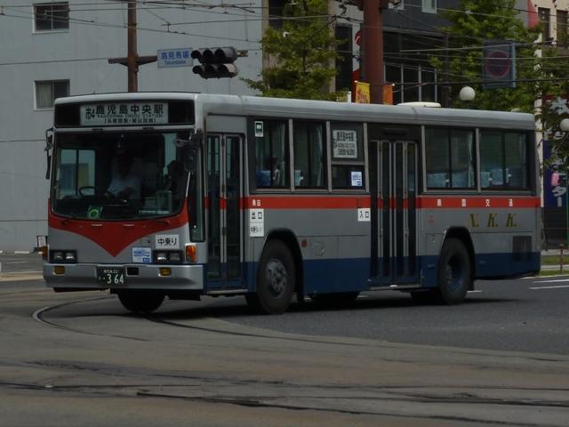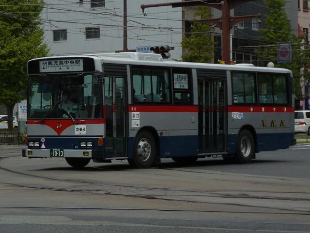 2011年10月に鹿児島で記録したバス画像のよせ集め「鹿児島で見たバス2012」。 中途半端なシリーズになりそうなので早々に切り上げる予定としておきながら、ダラダ ラと続いています。今回の南国交通編その2では、鹿児島22きナンバーの一般乗合車 のうち、2011年編で並べていない車両を中心に並べていきます。 なお、型式・年式は「南国交通 在籍車両一覧」『バスラマインターナショナル94号』 (2006),ぽると出版 を参照しました。 鹿児島22き364.U-LV218M改(90年車)。 南国交通はUDを除く国内3メーカーを導入しています。大型一般乗合車の標準的な仕 様は中扉4枚折戸+全引違側面窓+エアサス、内装も都内在住者からすると豪華に感 じるハイバックシートとなっています。いすゞ車は起伏の多い鹿児島市内路線を考慮し、 90年から高出力エンジン車を導入。まずは今回記録出来た南国交通の古参登録番号 車両だったキュービックボディのいすゞLV。この日は鹿児島市交通局と共同運行路線の 「市4」系統の運用に入っていました。ちなみに古参車両の後部行先表示は「南国交通」 幕で固定しており、使用していません。 鹿児島22き367.U-HU2MMAA(90年車)。 90年に導入した日野車。いすゞ車と異なり、当時の日野車は標準エンジンを搭載して います。この日は「ドルフィン150」の運用に入っていました。市営バスとの共同運行路 線や「ドルフィン150」は古参車で運用している感。 鹿児島22き523.U-HU3KMAA改(92年車)。 日野車は92年導入車から高出力エンジンを導入しています。 鹿児島22き524.U-HU3KMAA改(92年車)。 せっかくなので日野の92年導入車をもう1台。「サントリーボス」のラッピング広告車。 「SUNTORY」の表記が大文字となっている旧ロゴのままです。 鹿児島22き622.U-LV218M改(93年車)。 2011年編で並べていなかった93年導入のいすゞ車。前年導入車と特に大きな変化は ありませんが、一応参考までに。 鹿児島22き863.KC-LV280N(96年車)。 96年導入車からKC規制車。2011年に記録出来なかったキュービックボディのいすゞ LV。97年より西工ボディでの導入となるため、KC規制車のキュービックは少数派。 鹿児島22き921.KC-HU3KMCA(97年車)。 日野車のKC規制車はリヤ側を記録出来た97年導入車を並べておきます。ちなみにヘ ッドライトはKC規制車より角目標準となっています。 鹿児島22き1011.KC-MP717M(98年車)。 南国交通では97年から三菱ふそう一般乗合車の導入を再開。画像の車両は99年導入 車です。南国交通はごく最近から行先表示に系統番号表示を開始し、LED車の表示はも ちろん、一部の方向幕車も方向幕の交換を行っています。 鹿児島22き1013.KC-HU3KMCA(99年車)。 系統番号付方向幕を装備している日野車。 なお、西工ボディのいすゞ車は今回記録できず。2011年編を参照ということで失礼。 PR