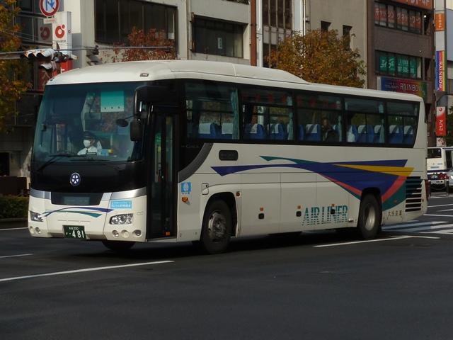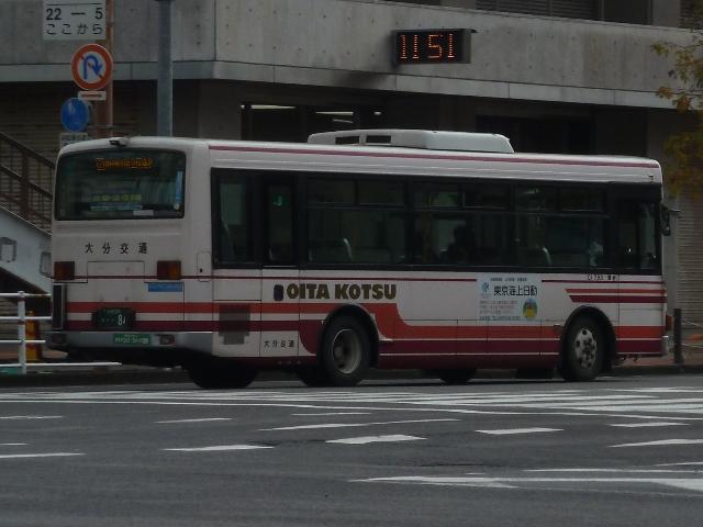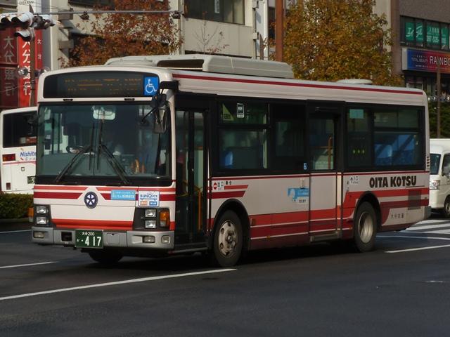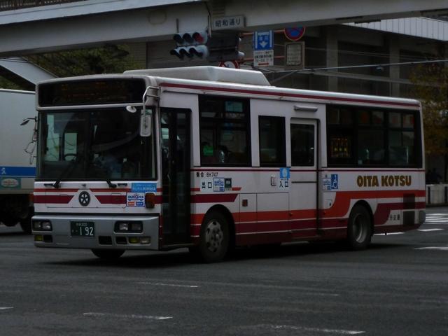 前年に記録したバス画像を年明けの更新でブログのネタにするという、拙ブログでおなじ みの無理矢理エントリ。タイトルの通り、2012年12月に大分駅周辺で記録出来た大分 交通の車両を並べていきます。 なお、型式・年式は「大分交通グループ 在籍車両一覧」『バスラマインターナショナル94号』 (2006),ぽると出版 を参照しました。 また、一部の車両には「O I 624」といった所属営業所やメーカーをあらわす社番表記も見 られますが、参考資料としたバスラマによれば既に現場では使用していないとの事。拙ブロ グも登録番号のみとさせていただきます。 大分22か1820.U-LR332J(92年車)。 まずは富士6EボディのいすゞLR。スペアタイヤを収納しているため、ヘッドライトとフロント バンパーの間にスペースがあります。小生的にようやく記録出来た車両です。 大分22か1896.U-LR332F改(94年車)。 94年は短尺の中型車を導入。純正ボディのLR。 大分22か1899.U-RM210ESN(94年車)。 こちらは富士ボディのRM短尺車。導入台数の割に車種が豊富な大分交通、1~2台 しか在籍していないものもザラです。 大分22か1959.U-MK218J(95年車)。 95年導入の中型車は前年の短尺から、標準的な9mとなりました。三菱ふそうMK。 大分交通で三菱ふそう車の一般乗合車は少数派です。 大分22か1992.U-RM210GSN(95年車)。 UDのRMも9mサイズ。 大分200か14.KK-MK23HH(99年車)。 99年からワンステップ車の導入を開始。中扉折戸仕様の三菱ふそうMKワンステップ車。 大分200か60.KK-LR233J1改(00年車)。 00年導入のいすゞエルガミオワンステップ車。00年は一般乗合車をエアサスで導入し ています。 大分200か64.KK-RJ1JJHK改(00年車)。 中扉折戸仕様の日野レインボーワンステップ車。日野の中型エアサス車の型式は通常 「RR」となりますが、KK規制の乗合車は「RJ」のみで型式に「改」を付ける事でエアサス と判別します。 大分200か84.KK-LR333J1(01年車)。 01年車はリーフサス仕様で導入。リヤ側の画像しか並べていませんが、中扉が折戸から 引戸に変更しています。扉側の画像は2011年編を御参照のほど。 大分200か192.KK-RJ1JJHK(04年車)。 日野中型車は純正ボディでの導入ばかりと思いきや、04年は西工ボディで導入。 大分200か194.KK-RM252GSN(04年車)。 同じく西工ボディの中型車ですが、こちらはUDのRM。 大分200か354. テールライト配置からいすゞLRと思しき西工ボディの中型車。2011年時点では、大分 トリニータをPRするラッピング広告車となっていましたが、契約終了となった模様。 大分200か417. 純正ボディのいすゞLRノンステップ車。台数は多くありませんが、コンスタントに新車 導入を行っています。 <エアライナー運用車両> 大分200か325. 「エアライナー」は大分空港と大分市内を結び、大分駅と空港を直行する便や別府経由 便など様々。「エアライナー」専用車として2000年代の一時期導入が続いた西工E型 ボディ。画像の車両はE型ボディ導入最終期となるUDのRA直結冷房仕様車。 大分200か377. 08年には、いすゞガーラの廉価仕様車を導入。長らく「エアライナー」の主力だった貸切 転用車やスタンダードデッカーのエアロバスなどの古参車はAPU線に追いやられました。 大分200か436. 大分200か481. 廉価仕様のいすゞガーラ導入は続き、「エアライナー」の大分行き運用の主力となって います。 大分200か543. LKG規制車も在籍しています。 <高速車> 大分200か554.