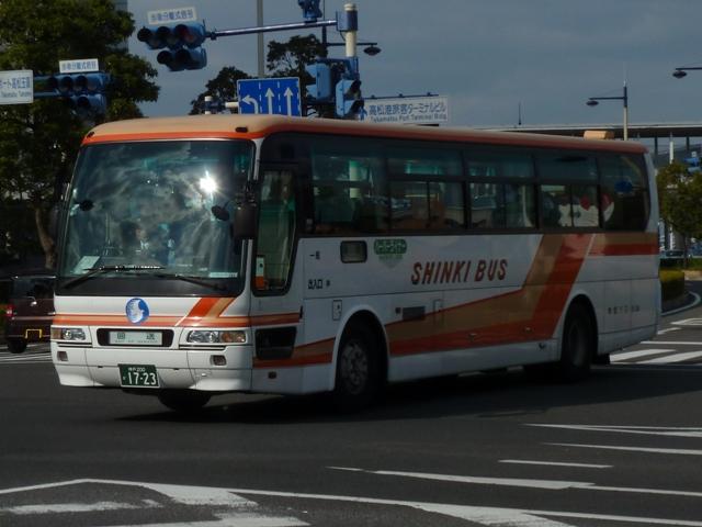 2012年11月に記録した「高松で見たバス2012」と題したバス画像よせ集め。 今回は、ジェイアール四国バス・四国高速バスなど香川県側の事業者と共同運行する 近畿・中国地方事業者の高速車両画像を中心に並べていきます。 <神姫バス> 社番:5134.KL-MS86MP(05年車)※1。 神姫バスは「高松エクスプレス神戸号」の共同運行事業者。記録出来た車両は神姫バス の高速バスで主力的存在となるKL規制車の三菱ふそうMS。 <阪急バス> 社番:2794.KL-MS86MP(01年車)※2。 阪急バスは「高松エクスプレス大阪号」の共同運行事業者。側面固定窓仕様で西工C型 ボディの三菱ふそうMS。 社番:2944. PJ規制車以降の三菱ふそう高速車は純正ボディで導入。モデルチェンジしたエアロエー スも、これまで同様サブ冷+2本トランクを継続採用しています。 社番:2999. ヘッドライト下部にLEDデイライトなどを装備したLKG規制車。この車両は登録番号を 「大阪230あ2999」と社番に合わせた希望番号で取得しています。 <関西空港交通> 和泉230え2003. 関西空港リムジンバスは香川側2事業者、大阪側は関西空港交通と南海バスの計4事 業者で運行中。記録出来た関西空港交通の車両は画像の日野セレガのみ。 <南海バス> 堺200か54. 南海バスは高松エクスプレスと共同運行の「たかなんフットバス」と関西空港リムジンバス を運行。画像は「たかなんフットバス」運用に入っていたソラエカラーの日野セレガ。リヤ側 のみしか記録できず。徳島といい今回の高松といい、南海バスはどうも小生とタイミングが 合いません。 <西日本ジェイアールバス> 車号:644-2993. リヤ側しか記録できなかったといえば、西日本ジェイアールバスも同様。高松エクスプレ ス大阪号・神戸号・京都号の3路線と共同運行しているにもかかわらずこの結果。この車 両は京都ナンバーの三菱ふそうMS。 <京阪バス> 社番:H-1250.BKG-MS96JP(09年車)※3。 「高松エクスプレス京都号」は京阪バスも共同運行事業者となっています。BKG規制車 の三菱ふそうMSエアロエース。 <中国ジェイアールバス> 車号:644-2903.KL-MS86MP(02年車)※4。 中国ジェイアールバスは高松と広島を結ぶ「瀬戸内エクスプレス」をジェイアール四国バス と共同運行。ちなみにジェイアール四国バスは「高松エクスプレス広島号」という名称になり ます。画像の車両は中国ジェイアールバスで一時期採用した高速・貸切塗装の三菱ふそう MS。 「高松で見たバス2012」は今回で終了です。シリーズ終了近くのエントリはリヤ側のみなど 微妙な画像ばかりになり失礼しました。 なお、型式・年式は以下の文献を参照しました。 ※1)「神姫バスグループ 在籍車両一覧」『バスラマインターナショナル 109号』(2008), ぽると出版 ※2)『BJハンドブックシリーズR68 阪急バス』(2009),BJエディターズ ※3)「京阪バスグループ 在籍車両一覧」『バスラマインターナショナル 120号』(2010), ぽると出版 ※4)「中国ジェイアールバス 在籍車両一覧」『バスラマインターナショナル91号』(2005), ぽると出版 PR