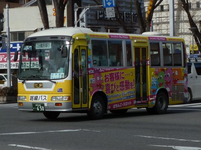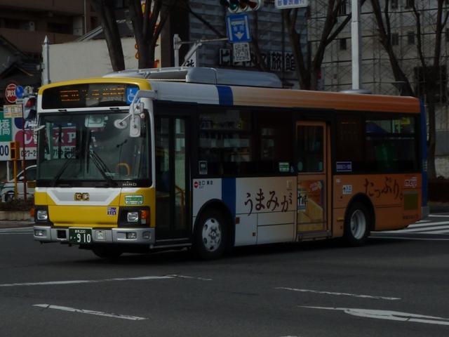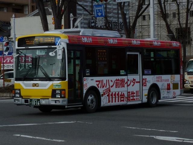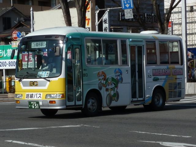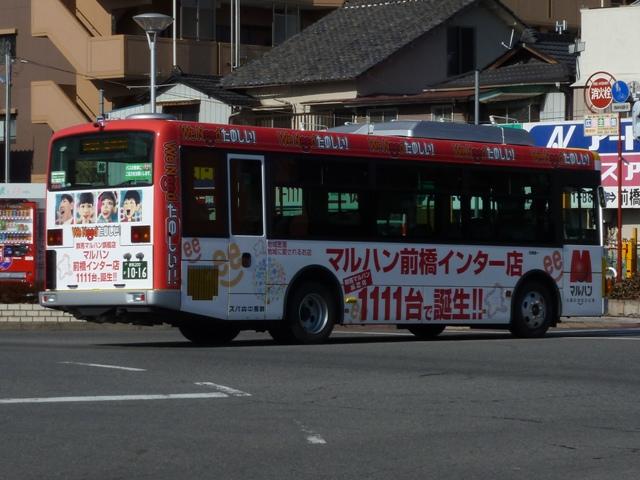 先日久々に群馬方面へ出かける機会があり、前橋駅前で割と時間をかけてバス車両の 撮影をすることが出来ました。ということで、拙ブログでは2011年以来となる「前橋で見 たバス」シリーズ2013年版をスタート。今回のその1では、記録出来た群馬中央バスの 車両画像を並べていきます。 なお、ノンステップ車の型式・年式は『年鑑バスラマ』・『バスラマインターナショナル』各号 掲載の「ノンステップバス導入一覧」を参照しています。 群馬200か807.PDG-KR234J2(08年車)。 まずは群馬中央バスの一般乗合車で主力の中型ノンステップ車。画像の車両は1つ目 ヘッドライトの日野KRで、群馬のバスでおなじみ「サントノーレ 」の側面広告車となって います。 前橋と高崎を結ぶ芝塚線は、ほぼ中型ノンステップ車による運行となっています。芝塚線 は2010年10月に前橋駅付近にある大型商業施設「けやきウォーク前橋」まで昼間時間 を中心に延伸しましたが、約1年で中止。高崎方面からの需要喚起は難しかった模様。 群馬200か910.PDG-KR234J2(10年車)。 日野中型ノンステップ車の導入が続きます。群馬中央バスのラッピング広告車は沿線の パチンコ屋や地元企業・商店・病院中心なので、明治チーズのラッピング広告車は目立つ 存在です。 群馬200か1016.SKG-LR290J1(12年車)。 2011年はいすゞエルガミオのノンステップ車を初導入。画像の車両は引き続きの導入と なった2012年車で、SKG規制車のエルガミオ。早速沿線のパチンコ屋ラッピング車にな っています。 群馬200か650. 群馬200か651.2010年10月に前橋で記録。 前橋と伊勢崎を結んでいた路線は平日朝1本のみ伊勢崎発を残し、駒形駅までに短縮。 伊勢崎は群馬中央バスの拠点のひとつで、往年の路線網に比べれば縮小したとはいえ 数年前まで前橋・高崎・本庄への路線網を維持してきましたが、もはや見る影もない状況 となってしまいました。ちなみに駒形駅への路線短縮にあわせ「けやきウォーク前橋」経由 へ経路変更を行い、日野リエッセによる運行となっています。おそらく2台とも同じ事業者 からの移籍車と思われますが、詳細はまったく分かりません。 群馬200か982.SKG-HX9JLAE(12年車)。 長らく専用カラーのリエッセで運行していた前橋駅と新前橋駅を結ぶ路線に、L尺2扉仕 様の日野ポンチョが登場。塗装は群馬中央バス標準カラーとなっています。今のところ 側面広告が無く、数少ない群馬中央バス標準塗装デザインを堪能出来る車両となって います。 群馬22い513. 小判ナンバーで登録された専用カラーのリエッセも在籍しています。リヤ側のみの画像で 失礼します。 群馬200か126. 中型ノンステップバスの増備で、第一線を退いた感のある大型乗合車。一時期、群馬中 央バスの乗合車で中心的存在となっていた京阪バスからの移籍車も、現在は前橋競輪 場送迎バスやザスパ草津シャトルバスなど送迎運用メインとなっているようです。 まずはエアロスターKボディの三菱ふそうMPで、側面逆T字窓仕様の車両。結構な古参 車ですが、前橋競輪場送迎バスは年度毎に運行事業者の変更があるで、おいそれと代 替出来ないのかもしれません。 群馬200か206. こちらは前橋駅発着路線の系統番号導入にあわせて行先表示をLED改造した日野車。 毎日運用があると思えない大型乗合車ですが、ラッピング広告車となっています。 群馬22あ2379. 前橋競輪場送迎バスは貸切車で運行することもあるようです。画像のスーパーハイ デッカーの三菱ふそうMSは、パンダマスクともよばれ一世を風靡したエアロクィーン MV。製造終了から20年以上経ち、インバウンド専門事業者や地方事業者でも見か ける機会が少なくなってきました。 さて、群馬中央バスでは前身の上毛中央自動車時代に運行していたキャブオーバー型 木炭車をデザインした500円のオリジナルバスカードを販売しています。「思い出バスシ リーズ①」ということなので、売れ行きによっては次回販売もあるのかもしれません。旧塗 装の日野BTをデザインしたカードが出ることを願い、わずかではありますが購入させて いただきました。※画像は一部修正しています。 PR