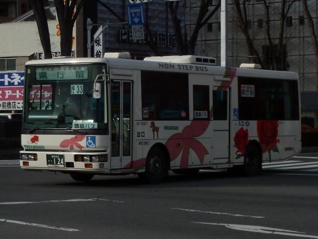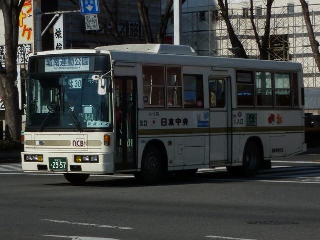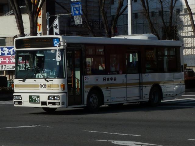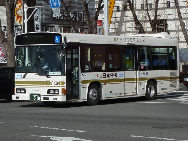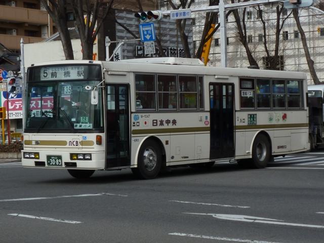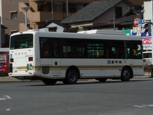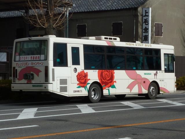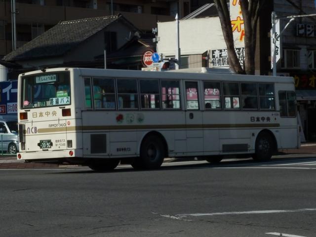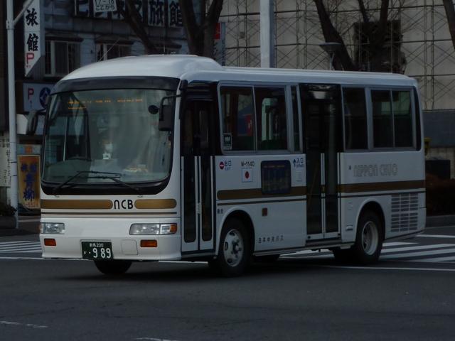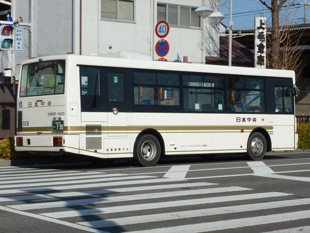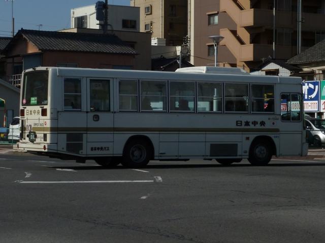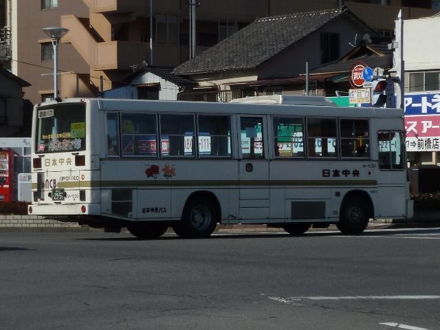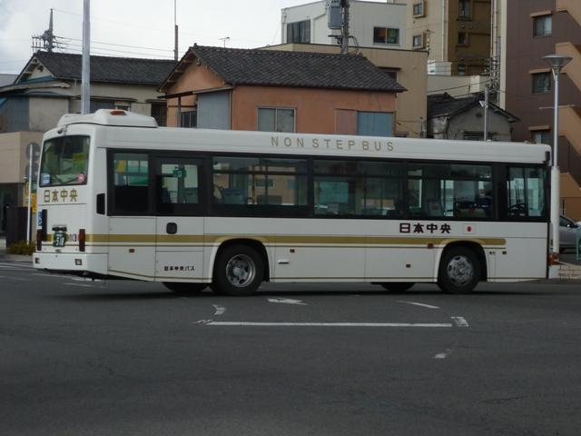 まだまだ続く「前橋で見たバス2013」と題した、前橋駅前で記録したバス画像のよせ集め。 今回のその4では、記録出来た日本中央バスの画像を並べていきます。 型式・年式は「日本中央グループ所有車両全データ」『バスマガジン42号』(2010), 講談社ビーシー/講談社 を参照しました。 社番:M-1039.KC-RM211GSN改(96年車)。 まずは富士ボディのRM。この車両は自転車搭載可能で、日本中央バスの名物的存在と なっています。非常口が中央部にあるなどオリジナルな仕様満載です。 社番:M-1044.KC-RM211GSN改(96年車)。 こちらはごく普通のRM。非常口は標準的な位置にあります。 社番:M-1047.KC-UA460NSN改(97年車)。 社番:M-1048.KC-UA460NSN改(97年車)。 大型車の自転車搭載可能バスも在籍。こちらは榛東線で運用中です。上下で車両が異 なり失礼します。 社番:M-1050.KC-RM211GSN改(98年車)。 西大室線で運用中のRM。『バスラマインターナショナル 57号』の事業者訪問によると、 塗装には「前橋市から市民にプレゼントとされて走るバスという意味が込められている 」 とのこと。 社番:M-1066.KC-RR1JJAA(99年車)。 前橋駅と上毛電鉄中央前橋駅間を結ぶシャトルバス専用車。日野RRのシャーシにケー ブルカーを模したアメリカ製ボディを架装した日野オリジナルバスです。ボディの木製部品 にだいぶ痛みが出ているような印象。 社番:M-1087.KK-RM252GAN(00年車)。 2000年導入の西工ボディRMノンステップ車。特別塗装で西大室線で運用中。 群馬200か518.PB-HR7JHAE(05年車)。 9mサイズの日野HR。社番表記が見当たらないため、登録番号で並べておきます。 社番:M-1126.PDG-RM820GAN(08年車)。 西工ボディのRMワンステップ車。非常口が標準的な位置にあるので分かりにくいですが、 自転車搭載可能仕様となっています。 社番:M-1140. 大型ノンステップ車で運行していた広瀬東善線は2012年4月に大幅減便、あわせて昼間 の運用車両も小型化されました。側面行先表示の位置やサイズが特徴的な日野RXは京 浜急行バスからの移籍車。画像の車両含めて2台在籍。 群馬200か992. ラッピング広告車となっているため社番表記が分からない日野RX。こちらも移籍車ですが、 元事業者はどこなのか分からず。なお、日野RX移籍車は広瀬東善線のほか群馬総社駅線 の運用にも入っていました。 社番:M-1145.