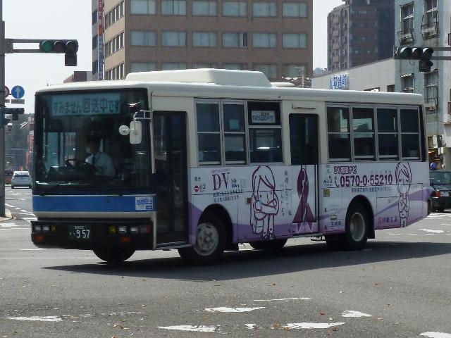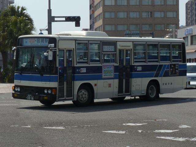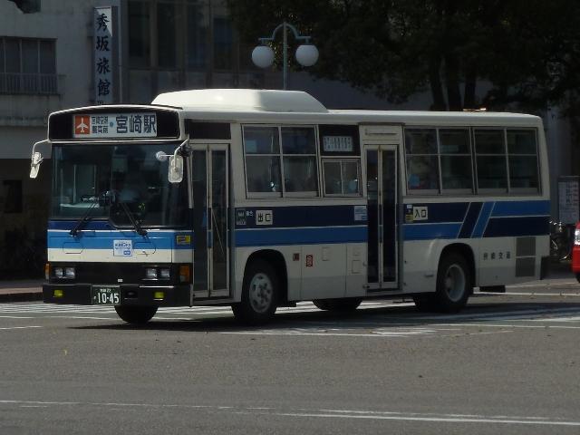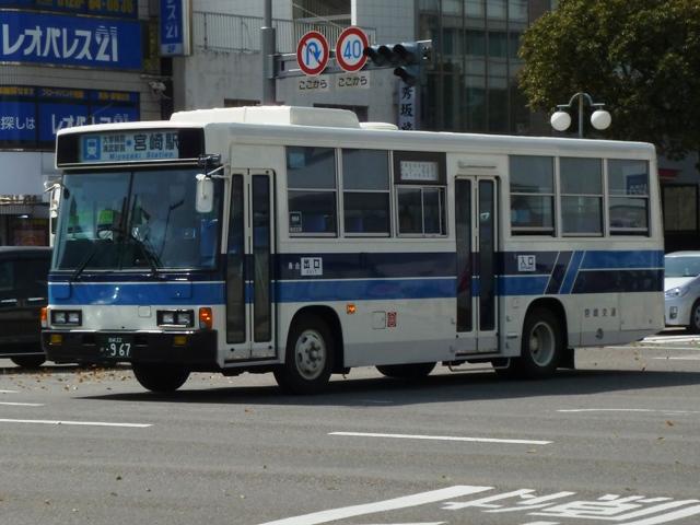 「宮崎交通のバス2013」と題したバス画像のよせ集め。 今回のその3は、2012年編で一部の車種しか記録できなかったU規制車の一般乗合 車(貸切転用車を除く)を並べていきます。やはり何度も出かけないと、見られない車両 が多いことを実感します。 宮崎22か957.U-JM210GCN(92年車)。 まずはUDの中型車。P規制車では富士ボディのRMを導入していましたが、U規制車では 西工ボディ専属モデルのJMを導入。ワンステップ仕様を評価したのかもしれません。 宮崎22か967.U-LR232J(92年車)。 U規制車のいすゞLRエアサス仕様車。宮崎交通で新車の導入台数が減少傾向ということ もあり、いすゞLRを導入するのは87年以来となります。 宮崎22か1011.U-JM210GCN(93年車)。 93年導入のJM。 宮崎22か1016.U-MK517J(93年車)。 三菱ふそうMKのエアサス車。2012年編で並べた92年導入車の増備車になります。 それにしても今回は、リヤ側を記録出来なかった車種の多さが反省点です。 宮崎22か1023.U-LR232J(93年車)。 そんな中、リヤ側を記録出来たいすゞLR。テールライトが角型タイプとなっています。 93年は大型車のいすゞLVも導入していますが、今回も見ることは出来ませんでした。 宮崎22か1045.U-RR3HJAA(94年車)。 2012年編で記録できなかったU規制車の日野RR。ヘッドライトは当時オプションだった 角型ライトを採用しています。 宮崎22か1053.U-MK618J(94年車)。 94年はモデルチェンジした三菱ふそうMKを初導入。こちらも2012年編で記録できなか ったので、出かけた甲斐がありました。 宮崎22か1074.U-JM210GCN(95年車)。 95年導入のJM。JMは複数年にわたりまとまった台数導入していたことから、割と見か ける存在です。 PR