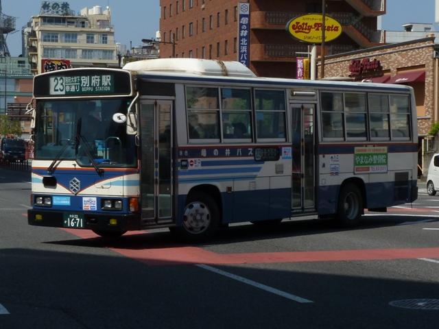 2012年は九州へ出かけてばかりだった小生。大分へも2度ほど行きましたが、どちら も天候不良で早々に退散していました。先日時間がありましたので、熊本とあわせて大 分にも行きました。2度あることは3度あるとも言いますが、幸いにも晴天の1日。3度目 の正直となり、まとまった枚数の画像を記録することが出来ました。停滞気味の拙ブロ グではありますが、「大分で見たバス2013」をスタートしていきます。 今回は2011年編と逆に、別府エリアをメインとしている亀の井バスの車両画像から並べ ていきます。 なお、型式・年式は「亀の井バス 在籍車両一覧」『バスラマインターナショナル102号』 (2007),ぽると出版 を参照しました。 <一般乗合車> 大分22か1589.P-RJ172CA(90年車)。