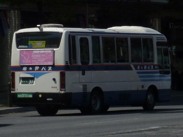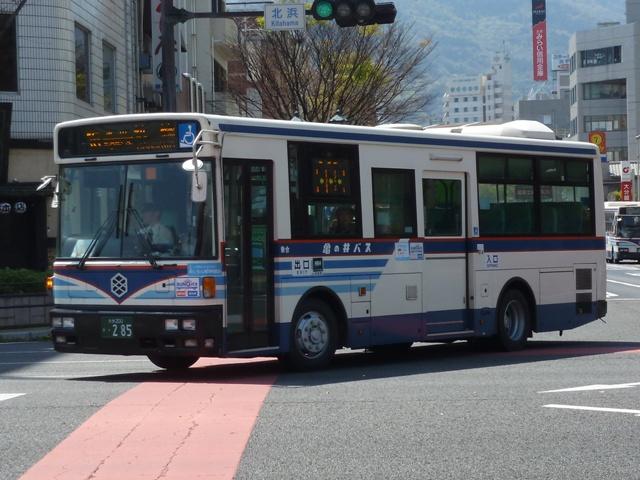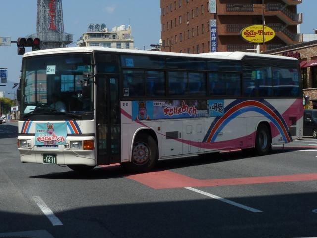 <貸切車>訪問でもLRの正面側や西工ボディのいすゞLR、RMリフトバスなど記録したい車両の 画像確保に至らず。 ※型式・年式は『バスラマインターナショナル 123号』(2011)を参照。 大分22か1681.U-RU2FTAB(91年車)。 現行貸切塗装に塗り替えられた西工C-Ⅱボディの日野RU。この日はガイドさんの七五 調案内が名物となっている「別府地獄巡り」の定期観光運用に入っていました。 大分22あ99.U-CH3HFAA(91年車)。 こちらが貸切旧塗装。古参の小型貸切車で、側面固定窓仕様の日野CH。 PR