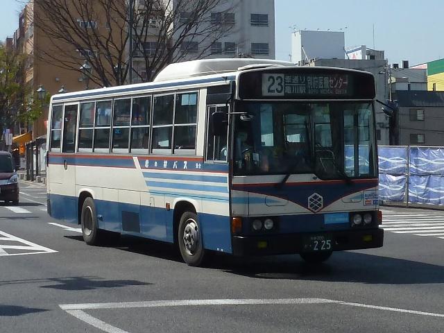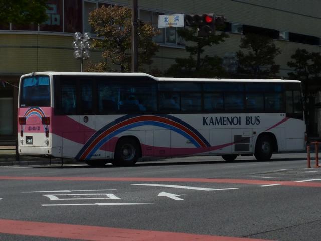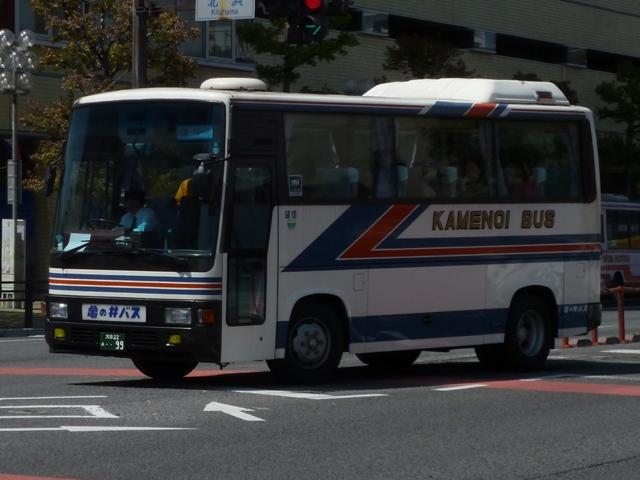一般路線車は中型の日野車をメインとしている亀の井バス。まずは古参格となるP規制 車の日野RJ純正ボディ。ヘッドライトは当時オプションだった角型を採用しているため、 年式よりも新しく見えます。新車導入が少ないこともあり、まだまだ第一線で運用中です。 大分22か1671.U-RJ3HJAA(91年車)。 91年導入からU規制車となり、ヘッドライトは引き続き角型を採用。 大分22か1788.U-RJ3HJAA(92年車)。 92年導入車から社名表記が現行ロゴタイプとなっています。 大分22か1878.U-RJ3HJAA(93年車)。 93年導入の日野RJ。正面や中扉部に貼られた「ぐるっと循環」の表示は、観光客に路線 バス利用促進のため、分かりやすさをアピールした「ぐるすぱバス」の目印。「ぐるすぱバ ス」は外廻り循環線の「ぐるっと循環」、別府・鉄輪・明礬を往復する「すぱっと往復」の2路 線で、特別塗装のキャラクターバスも運行しています。 大分22か1888.U-RJ3HJAA(93年車)。 93年車から後部の行先表示機位置が窓下辺に変更となりました。親会社の西鉄の影 響でしょうか。 大分22か2053.KC-RJ1JJCA(96年車)。 96年導入の中型車からワンステップを採用。西工58MCボディ架装した日野RJワンス テップ車。 大分22か2069.KC-RJ1JJCA(96年車)。 同じく96年導入の西工ボディのRJワンステップ車ですが、導入時期の関係でこの車両 から96MCボディとなります。この画像のみ2012年に大分駅前で記録したもの。 大分県宇佐市にある「九州自然動物公園アフリカンサファリ」を結ぶサファリ線の1往復が 大分駅へ顔を出してきましたが、2013年3月のダイヤ改正で廃止。この光景も過去帳 入りしました。 大分200か31.KK-RX4JFEA(00年車)。 主に内成線で運用しているという日野RX。1両のみの在籍で、間合いで別府市内路線 の運用にも入っています。 大分200か225.U-RJ3HJAA(93年車)。 純正車体の日野RJですが、この車両のヘッドライトは標準仕様の丸目タイプ。亀の井 バスでは現在少数派の移籍車で、元は都内の学校送迎車だったとか。タイミングが合 わず扉側を記録できず。 大分200か285.PB-RM360GAN(06年車)。 一般乗合車の新車導入は01~05年まで行われず。久々にまとまった台数の新車導入 となったのが、06年導入のPB規制車のRMワンステップ車。2011年編で並べた車両 ですが、構図が全く同じ・・・。 大分200か503.PDG-LR234J2(10年車)※。