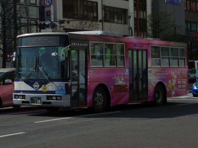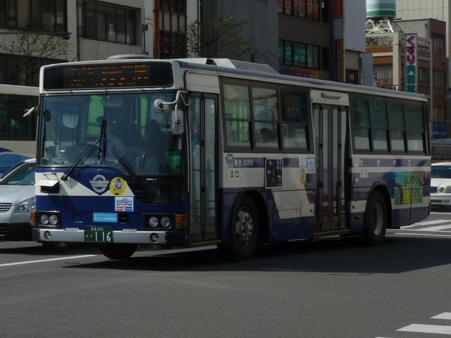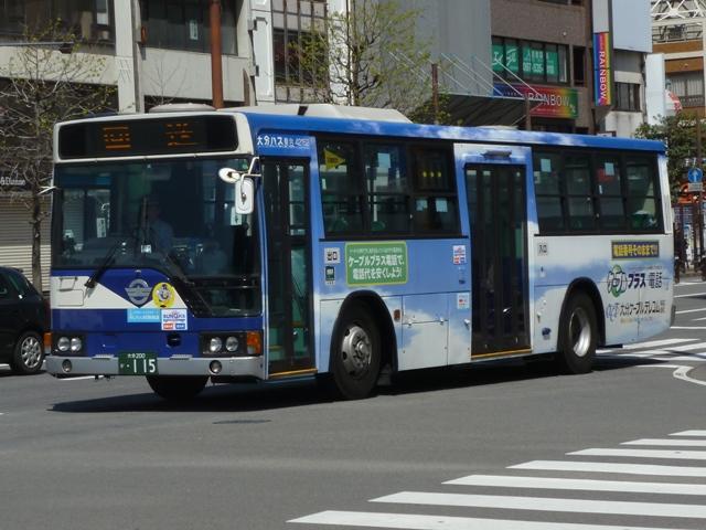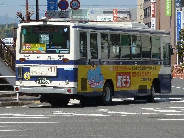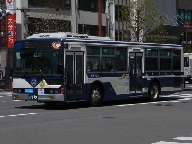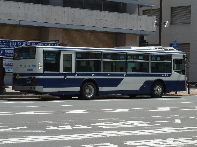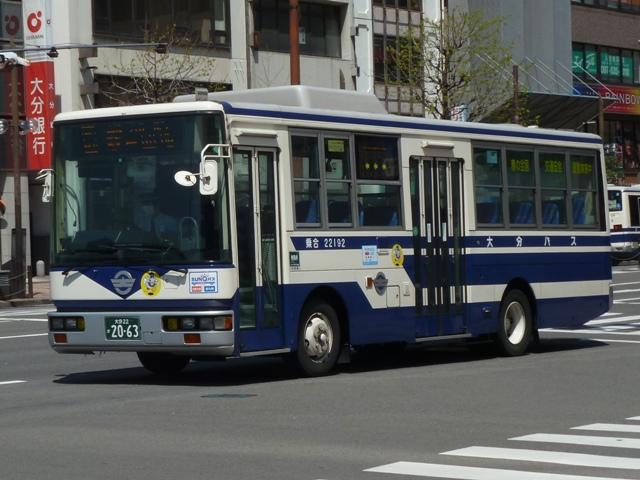 4月に大分へ出かけた際に記録したバス画像よせ集め「大分で見たバス2013」。 今回は大分県南部に路線網を展開する大分バスのUD車と三菱ふそう車を並べていき ます。 なお、年式・型式は「大分バスグループ在籍車両一覧」『バスラマインターナショナル121 号』(2010),ぽると出版 を参照しました。 <UD車> 社番:22184.U-RM210GSN(95年車)。 5桁社番の頭数字「2」はUD車をあらわします。まずは富士ボディのRMで、中扉は4枚 折戸仕様となっています。大分バスは富士重工ボディをまとまった台数導入していること で知られていますが、日野車をメインとしておりUD車は少数派です。 社番:22192.KC-RM211GSN(96年車)。 西工ボディでスペースランナー顔のRM。大分バスではこの1台のみという異端車です。 RMは96年車まで中扉4枚折戸仕様で導入。 社番:22195.KC-RM211GSN(97年車)。 97年導入車はワンステップながら中扉折戸仕様に変更。ボディ前面・側面に小さく「ワ ンステップバス」の表示。 社番:22200.U-UA440HSN(90年車)。 大分バスでは02~03年にかけて首都圏事業者からまとまった台数の移籍車を導入。 今のところUD移籍車は東京都交通局から富士ボディのUAのみ在籍しています。中扉 4枚折戸+短尺という仕様から、大分バス生え抜き車両に溶け込んでいます。 社番:22202.U-UA440HSN(90年車)。 画像の車両が今のところUD最終導入車となっているUA移籍車です。 <三菱ふそう車> 社番:42144.KC-MP747K(97年車)。 5桁社番の頭数字「4」は三菱ふそう車をあらわします。大分バスでは、UD車同様三菱 ふそう車も少数派です。まずは97年と、早い段階に2台登場したMPノーステップバス。 九州地区初となるノンステップバスで、後部座席の一部が向かい合わせとなっていると ころも初期型ならではです。リヤ側のみで失礼。 社番:42146.KC-MP747K(98年車)。 翌年も同型車を2台導入しています。こちらはリヤ側を記録できず。 社番:42152.P-MP218M(89年車)。 社番:42153.P-MP218M(89年車)。 02~03年にかけて登場した移籍車のうち、三菱ふそう車は画像の小田急バスと川崎市 交通局の2事業者から導入しています。今回記録できたのは小田急バス移籍車だけで、 しかも2011年編で並べた車両と全く同じでした。 社番:42175. PR