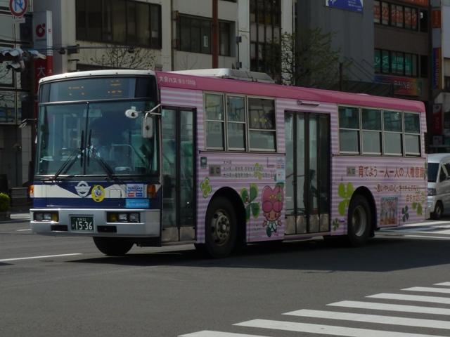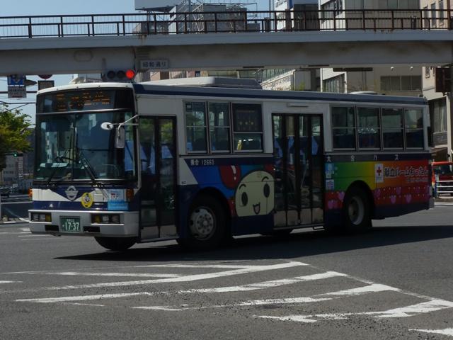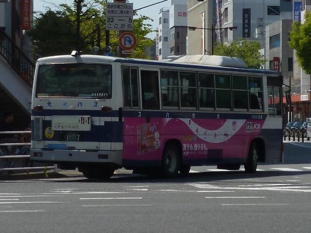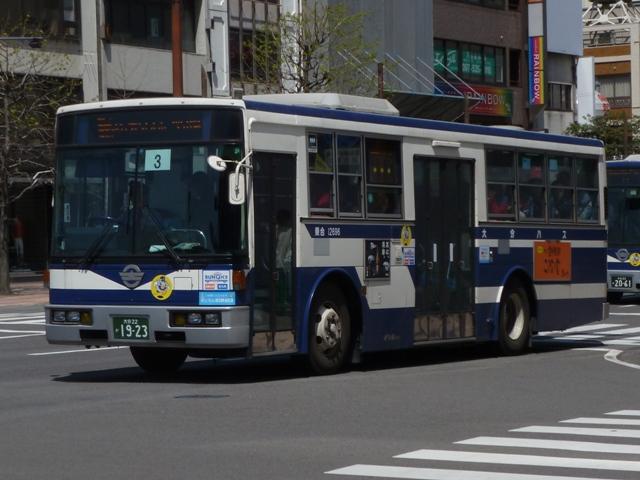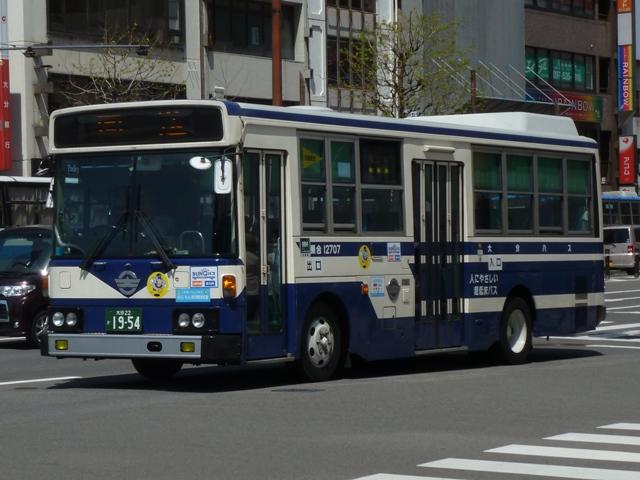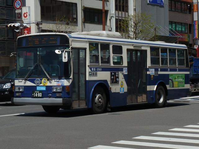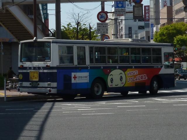 4月に大分へ出かけた際に記録したバス画像よせ集め「大分で見たバス2013」。 前回に引き続いての大分バス編です。今回のその2では、95年までに自社導入した日 野車を、一部2012年に記録したものも含め並べていきます。 なお、年式・型式は「大分バスグループ在籍車両一覧」『バスラマインターナショナル121 号』(2010),ぽると出版 を参照しました。 社番:12583.P-HT233BA改(88年車)。 大分バスは日野車をメインとし、かつ九州有数の富士重工ボディ所有事業者。つまり、 今では珍しくなった富士ボディの日野車が多く在籍しています。 まずは、角目ヘッドライト仕様となった88年導入のHT富士5Eボディ。2011年訪問時 は減ったとはいえまだまだ現役という印象でしたが、車両代替が進んだようで今回見る ことが出来た富士5Eボディはこの車両含め2台だけでした。 社番:12586.P-RJ172BA(88年車)。 初代レインボーは、この車両しか見ることが出来ませんでした。 ボディ側面の広告はところどころ色あせていることから分かるように、ボディに直接ペイン トしたもの。ラッピング広告が主流となった現在では懐かしいタイプです。リヤ側の画像の みで失礼。 社番:12587.P-RJ172BA(88年車)。2012年12月に記録。 正面側の画像として、2012年に記録したものを並べておきます。丸目1灯がデフォの初代 レインボーですが、大分バスではこのあたりの年式から大型車同様角目4灯仕様で導入。 社番:12608.P-HT233BA(89年車)。 社番:12612.P-HT233BA(89年車)。 89年導入車から富士7Eボディ架装となります。このあたりからラッピング広告車が増えて いきます。上下で車両が異なり失礼。 社番:12613.P-HT233BA(89年車)。 標準塗装車。なお、この頃は富士ボディと並行して日野純正ボディ架装車も導入してい ます。 社番:12646.U-RJ3HJAA(91年車)。 社番:12653.U-RJ3HJAA(91年車)。 91年導入の中型車。上下で車両が異なり失礼しますが、いちおう同じスポンサーの側面 ラッピング広告車で揃えてみました。なお、モデルチェンジしたボディでも角型ヘッドライトを 採用しています。 社番:12658.U-HT2MLAA(91年車)。 日野純正ボディのHT。この車両は側面下部に梅や鶯?※などのマークがペイントされて いますが、詳細分からず。 ※コメントより、マークは県の花:「豊後梅」と県の鳥:「メジロ」をあらわしていることが分かり ました。情報ありがとうございました。(2013年4月27日追記) 社番:12663.U-HT2MLAA(91年車)。 こちらは富士7EボディのHT。側面は献血PRのラッピング広告車です。 社番:12666.U-RU2FRAB(92年車)。 セレガの短尺シャーシに西工C-Ⅰボディの貸切転用車。行先表示は側面サボ、前面は フロントガラス内側に大型のLED行先表示機を取り付けています。主に長距離路線で稼動 しており、この日は急行大分~佐伯線の運用に入っていました。 社番:12674.U-HT2MLAA(92年車)。 92年導入の日野HT、例年通り純正ボディと富士ボディを並行導入しています。 ちなみにこの車両のフロントガラスに貼られた「1」の掲示は地元サッカーチームのトリ ニータ大分ホームゲーム開催臨時バス1号車をあらわしています。 社番:12676.U-HT2MLAA(92年車)。 92年導入の富士ボディHT画像も並べておきます。 社番:12690.U-RU2FTAB(94年車)。 モデルチェンジした西工C-Ⅰボディの12m車で、貸切からの転用車。型式を参照した バスラマ掲載時点では分離子会社の臼津交通在籍の貸切車でしたが、大分バス転籍 とあわせ路線転用となった模様。 社番:12696.U-HT2MLAA(94年車)。 大分バスで富士ボディを架装した日野車の最終導入となった94年車。94年導入のHTは 富士7Eボディのみとなっています。 社番:12702.U-RJ3HJAA(94年車)。 中型車に関してはこれまで通り純正ボディで導入。 社番:12707.U-RJ3HJCA(94年車)。 日野中型車は純正ボディでの導入がしばらく続いていましたが、94年に西工ボディの中型 車が1台登場。久々にヘッドライトが丸目仕様となっています。ツーステップ車ですが、中扉 部分が下がった特徴的な外観。ステップ高を低くした仕様で「人にやさしい超低床バス」の 標記がポイントです。 社番:12717.U-RJ3HJCA(95年車)。上は2012年12月に記録。 95年に増備された車両のヘッドライトは角目仕様となります。 PR