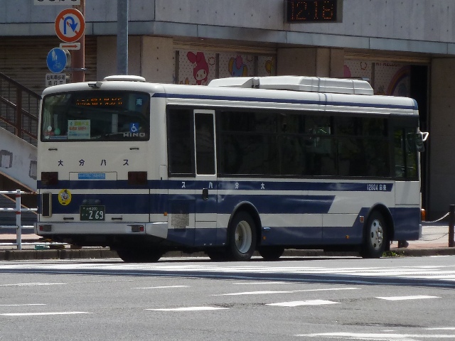 4月に大分へ出かけた際に記録したバス画像よせ集め「大分で見たバス2013」。 今回の大分バス編その3では、96~07年に導入した日野車を、一部2012年に記録し たものも含め並べていきます。 なお、年式・型式は「大分バスグループ在籍車両一覧」『バスラマインターナショナル121 号』(2010),ぽると出版 を参照しました。 社番:12732.KC-RJ1JJAA(96年車)。 96年導入車よりKC規制車となります。96年導入の中型車は純正ボディで中扉4枚折戸 のツーステップ仕様です。 社番:12744.KC-HT2MLAA(97年車)。 97年は94年以来となる日野大型乗合車を西工96MCボディで導入。側面の行先表示は 窓下に取り付けられましたが、LED化でお役御免。画像の車両のように「大分バス」幕で固 定されているものが最も多いようです。 社番:12747.KC-HT2MLAA(97年車)。 こちらの車両はラッピング広告車となっており、側面窓下の行先表示跡はラッピング広告 で隠れてしまいました。 社番:12751.KC-RJ1JJCA(97年車)。 97年は中型車も西工ボディを多数導入。中扉が折戸仕様に変更となったのは同時期導入 のUD車同様。ただしUD車はワンステップ仕様ですが、日野車は引き続き床が低いツース テップ仕様となっています。 社番:12757.KC-HT2MLCA(98年車)。 社番:12758.KC-RJ1JJCA(98年車)。 98年に導入した日野の一般乗合車は西工ボディのみ。 社番:12777.KK-RJ1JJHK(02年車)。 99~01年は一般乗合車の導入がほとんどなく、まとまった台数の導入は02年まで待つ ことになりました。02年に大量導入した中型ワンステップ車。中扉は引戸となり、全車西工 ボディを架装。 社番:12787.U-HT2MLAA改(91年車)。 社番:12789.U-HT2MLAA改(91年車)。2012年12月に記録。 02~03年にかけて登場した首都圏事業者からの移籍車。日野車は東京都交通局から の移籍車を導入しています。 社番:12800.PA-KR234J1改(05年車)。 社番:12804.PA-KR234J1改(05年車)。 05年にまとまった台数登場したOEMモデルのKRワンステップ車。PA規制車の為、ヘ ッドライト形状はいすゞLRと同じタイプです。 社番:12810.PA-KR234J1(06年車)。 KRのワンステップ車は05年以降、毎年導入しています。 社番:12815.PJ-KV234N1(06年車)。 社番:12814.PJ-KV234N1(06年車)。 06年は中型ワンステップ車のほか、大型ワンステップ車も導入。ジェイバスボディのKV。 自社発注の大型乗合車では久々に登場した純正ボディで、これまでのL尺メインから標準 尺といわれるN尺にサイズアップしました。前後で車両が異なり失礼。 社番:12819.PJ-KV234N1(07年車)。 07年導入のKVは西工ボディで登場。前年同様ワンステップ車です。 社番:12822.PA-KR234J1改(07年車)。