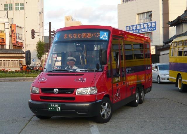 会津乗合自動車こと通称会津バスのエントリが多くなったので、カテゴリーをバスから 分けました。分社ですね←違。今回は会津若松駅周辺で見られる周遊バス、特殊塗装 バスを中心にお届けします。 まずはハイカラさんで使用のローザボンネット。画像のマルーンカラーと緑の2台が運 行中。いつもながらアレな画像で申し訳ありません。 中型路線車をハイカラさん風に改造した車両もいます。多客時の続行便として使用。 希望ナンバーで旧番号と同じにしているのがさすがです。 2007年より運行開始したらしい「あかべぇ」。某巨大掲示板によれば元関東バス担当 はなバスで使われていた車両とか。運行しているより修理しているほうが(ryと言われた 車両をあえて中古導入するとは・・・。先が長く無さそう。右後方に見切れている怪しい バスは・・・?下右のつづきはこちらをクリック。 つづいて北会津地域巡回バスの「ピカリン」。日野デュトロがベース(年鑑バスラマより) とのこと。ハイカラさんといい、どうもこの手のバスがお気に入りな様子。 周遊バスではなく会津若松市に合併した地区と市役所や駅を結びます。 あかべぇ号右後方に見切れているバスがこちら。 レトロ風ではなく本当のボンネットバス! お台場の大江戸温泉で使われていたはずと思いきや、同じグループだったんですね。 グループ内異動で無料シャトルバスとして使用中でした。 動いているのは喜ばしいのですが、冬季の融雪材によるサビが心配される当地での 使用はどうかと思いますが。 PR