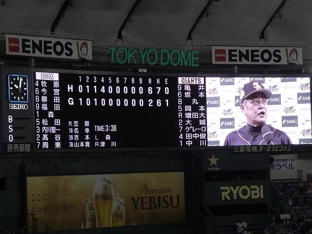 縁あってチケットを入手することが出来、日本シリーズを初観戦。おそらく2019年最後のプロ野球観戦となるでしょう。 讀賣 2 - 6 福岡ソフトバンク 3回までどう転ぶか分からない接戦となりましたが、4回相手のミスから得点を加えたソフトバンクが逃げ切り勝ち。日本一に王手をかけました。 敗れた讀賣ですが、新人投手に荷が重かったという結果論。9回にはソフトバンクの磐石なリリーフ陣の中ではイマイチ本調子でない抑えの森を助けるボーンヘッドが飛び出すようでは勝てません。