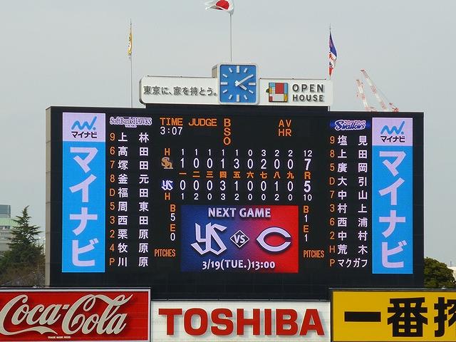今年もこちらのブログで更新継続です。この観戦エントリの更新で右斜め後からシリーズは休載となるかもしれません。 東京ヤクルト 5 - 7 福岡ソフトバンク 両チームとも若手打者の好打が目立ったこの試合。特にヤクルト2年目村上のインコースを上手に捌いた1発は天晴れでした。 一方投手陣は・・・。銘柄級は開幕までに仕上げれば良しですが、当落線上の選手はもう一段ギアを上げないとという感じ。今シーズンの復活を目指すソフトバンクのサファテは8回に登板しましたが、2安打1失点と往時の威力はまだ見られませんでした。