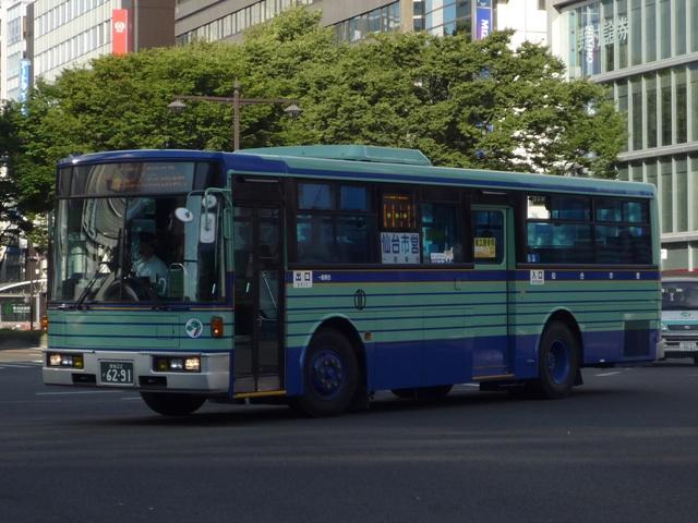 福島へ出かけた際に、わざわざ仙台を経由し記録したバス画像よせ集め。 このバス画像よせ集めシリーズでは初となる仙台市交通局の車両を並べていきます。 最初に仙台市交通局について簡単にまとめると、地下鉄1路線と路線バスを運行してい る公営事業者となります。1970年まで路面電車も運行していましたが、モータリゼーシ ョンによってバス転換しています。 ここ10年はバス事業の赤字体質脱却に向けた取り組みが行われています。かつて競合 関係にあった宮城交通への路線譲渡などが断続的に進められ、2002年に泉地区の路 線移管にあたっては車両の転籍も行われました。宮城交通カラーとなった元市営バス車 両が見られるのもこの為です。更なるコスト削減のため、一部の車庫を宮城交通・JRバ ス東北に管理委託も行われています。現在鋭意建設中の地下鉄東西線が開業すると、 更なる路線再編も見込まれています。もしかすると、大変化前の仙台市営バスを見たこ とになるのかもしれず、今後も注目していきたいところです。 仙台市交通局は4メーカー在籍し、かつ15年以上使うことから細かい仕様の変化や公営 事業者らしい「こだわり仕様」も多く、マニア的に見ていて飽きない印象。まずは、記録する ことが出来たいすゞ車画像を並べていきます。 宮城22か6148.U-LV218M(93年車)。 仙台市交通局のいすゞ車は富士重工ボディをメインに採用していました。 まずは記録出来たいすゞ車の古参格の車両。U規制車の一時期少数導入した高出力エ ンジン車です。側面窓は上部引き違いの青色ガラス仕様をこの頃から採用していました。 宮城22か6291.U-LV224M改(94年車)※1。 こちらは多数派を占める標準的なエンジンを搭載した車両。 PR